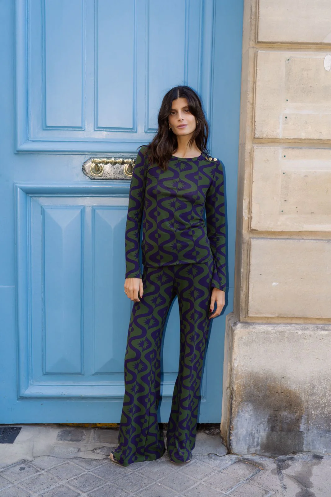 Le pantalon Andrea est tout simplement l’essentiel de votre dressing, été comme hiver. La matière, en jersey fluide et doux, est ultraconfortable. Il se porte aussi facilement avec un blazer pour aller au bureau ou bien avec une jolie maille et des baskets pour un look plus décontracté. Nous aimons tout particulièrement le combo pantalon Andrea/ top Mona du même imprimé pour un effet total look seventies. Le pantalon idéal pour être chic et cosy !