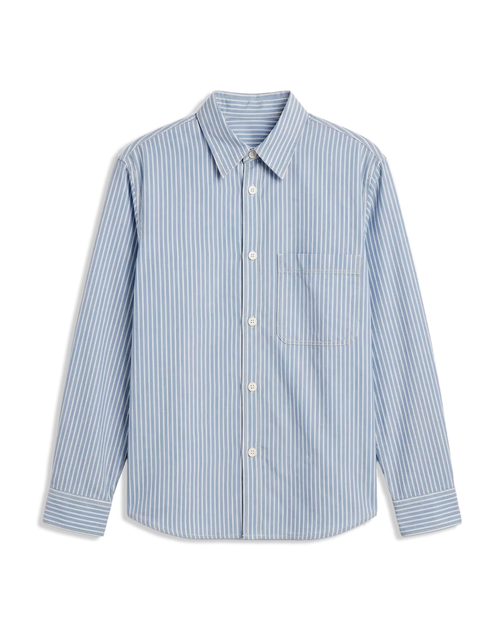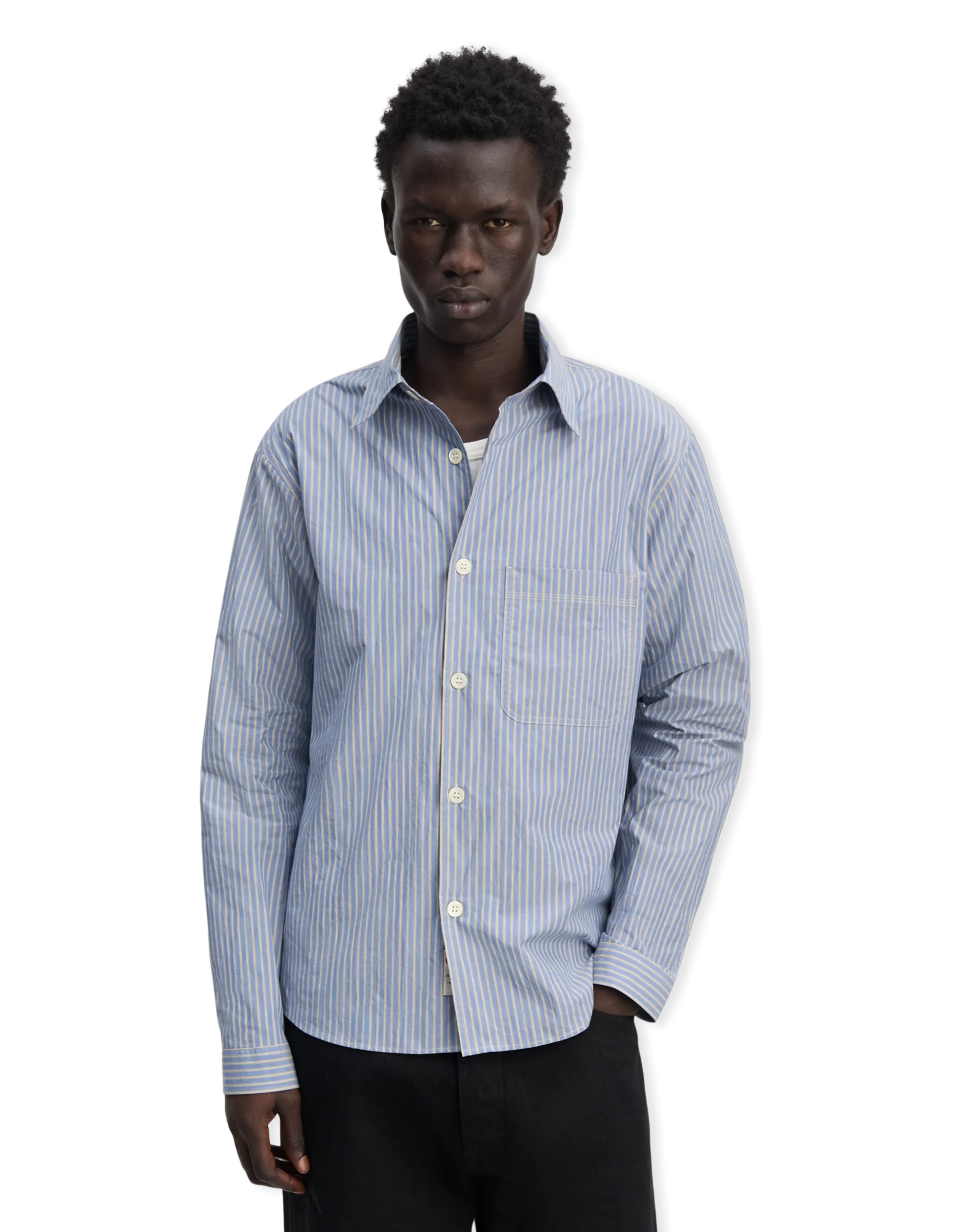 The Another Shirt 4.0 Jpn by Another Aspect is a sophisticated addition to any wardrobe. Crafted from 100% organic cotton, it features a stylish blue and white stripe pattern. Its lightweight mug-washed fabric ensures comfort, while the triple topstitch details enhance its refined aesthetic. Perfect for elevating everyday style, this shirt seamlessly combines timeless design with contemporary touches, making it a versatile choice for both casual and formal settings.
