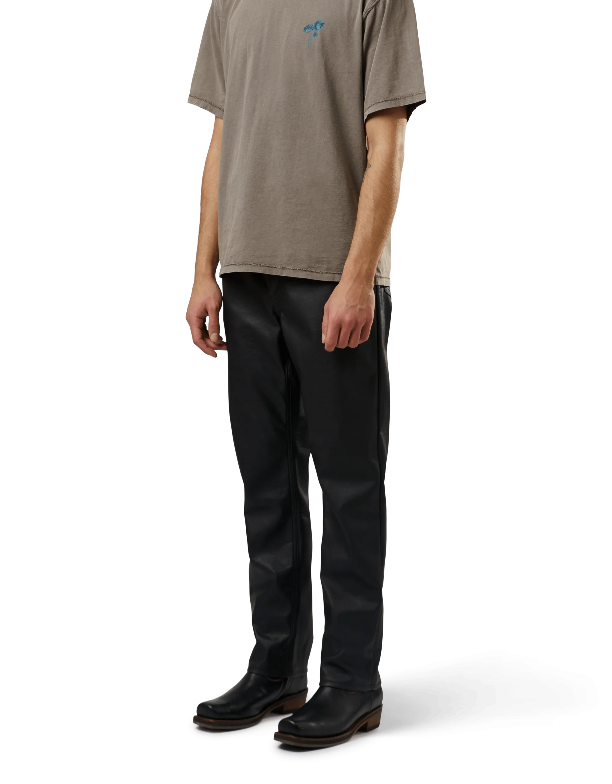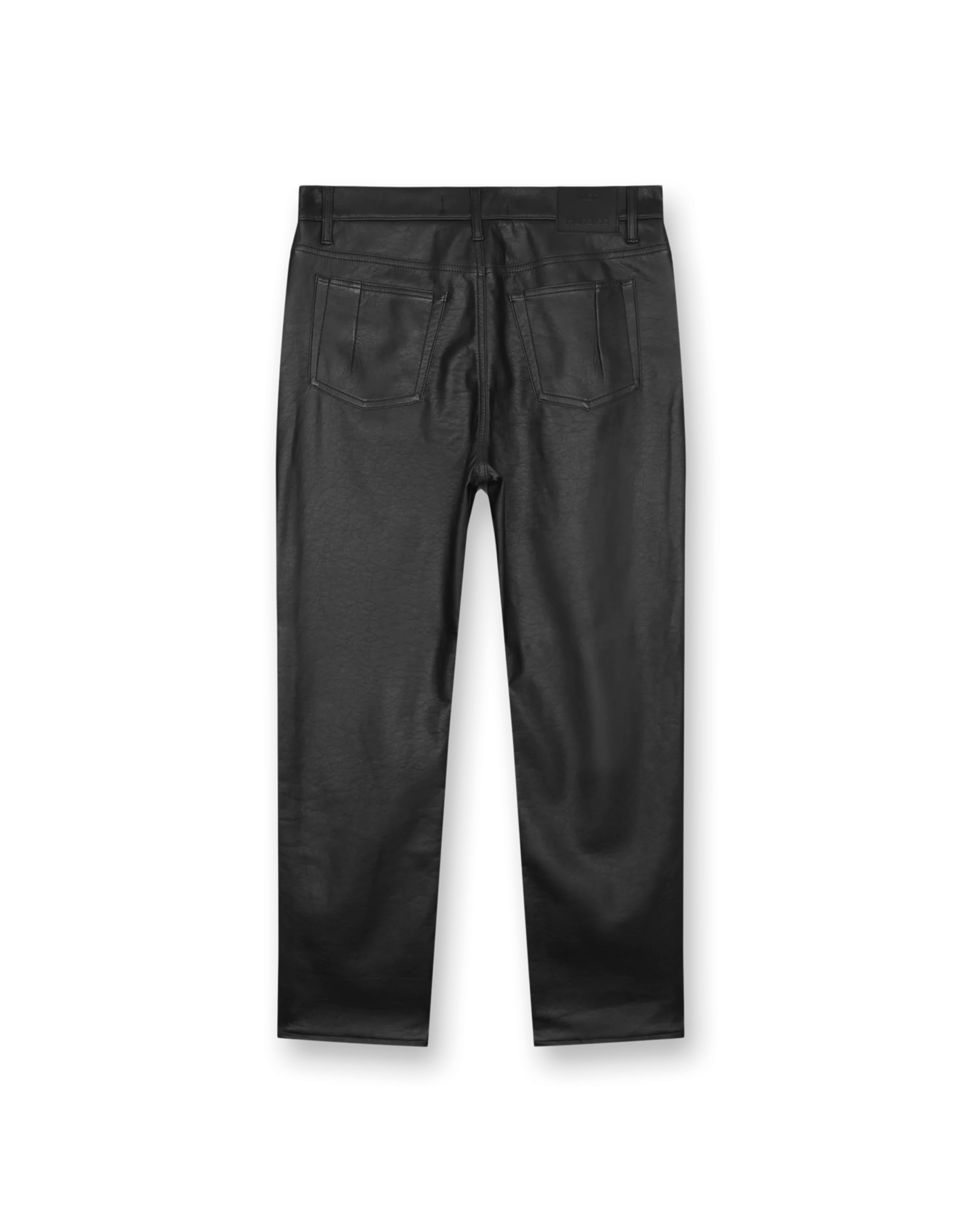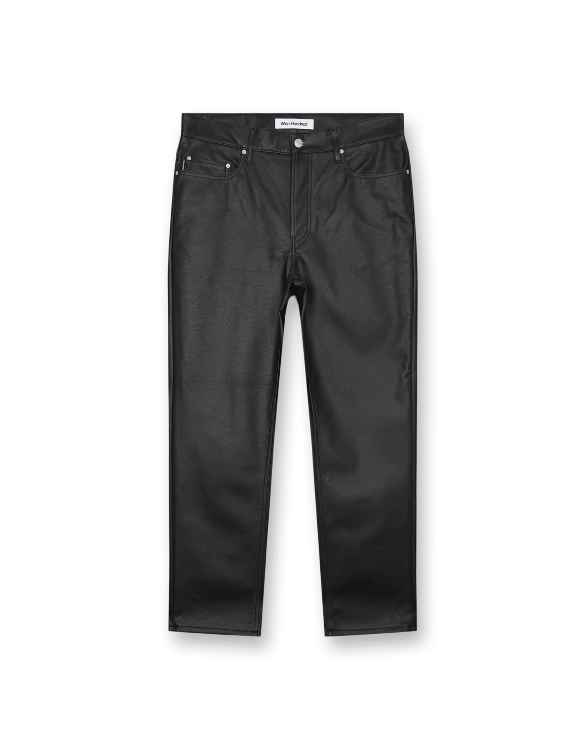 Introducing the Bill Pants by Won Hundred, a chic addition to any wardrobe. Crafted from premium vegan leather, these pants boast a 90s-inspired straight-leg silhouette and a mid-rise waist for a timeless yet contemporary appeal. The regular fit ensures all-day comfort, while the five-pocket design and belt loops add practicality. With a button closure for a classic finish, these pants effortlessly blend everyday style with refined elegance, making them an essential staple for fashion-forward individuals.
