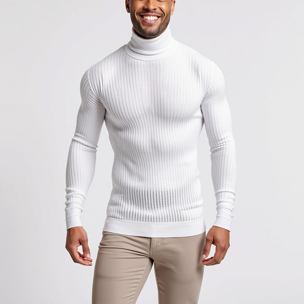 Le col roulé Blanc Suprême est une pièce minimaliste et sophistiquée qui apporte instantanément une touche de raffinement. Sa teinte blanche éclatante et sa texture côtelée donnent une allure nette et élégante, parfaite aussi bien pour une tenue formelle que pour rehausser un look plus décontracté avec classe.