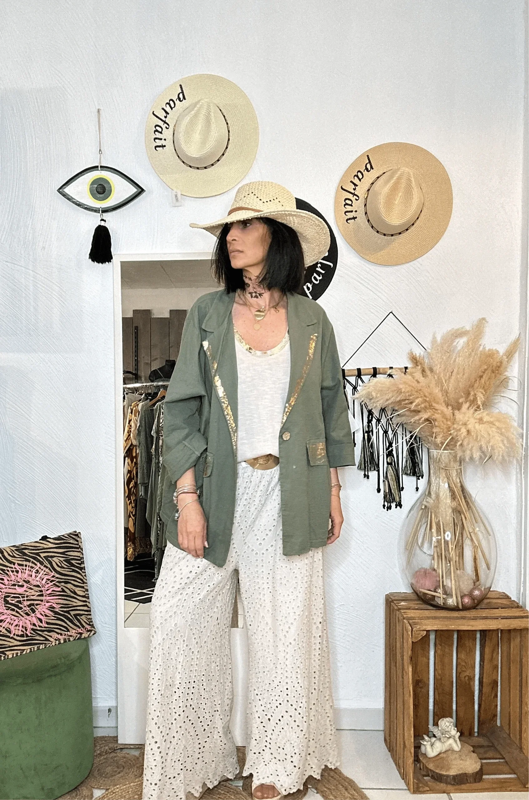 Ce blazer féminin possède une coupe droite avec une coupe droite. Sa longueur est idéale pour le look « Jeanne Birkin » à la mode actuelle.