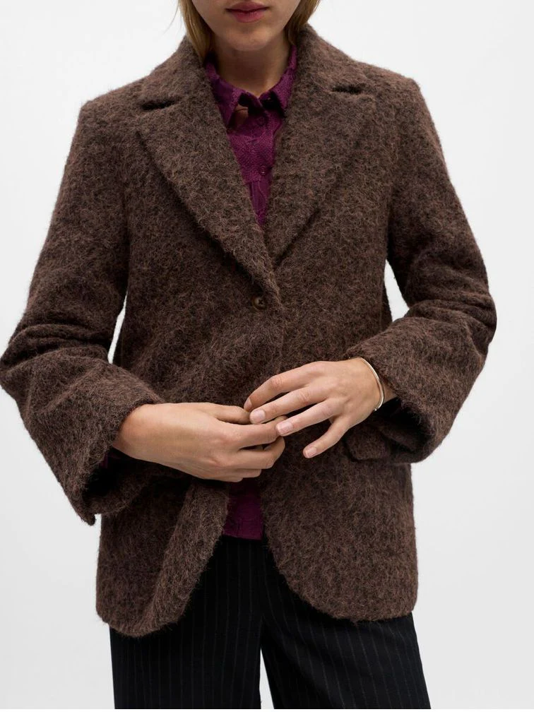 Blazer en laine bouclée marron Celina