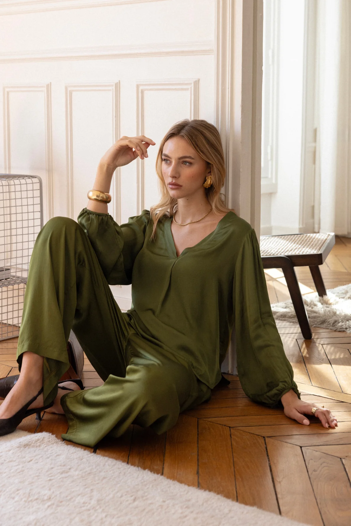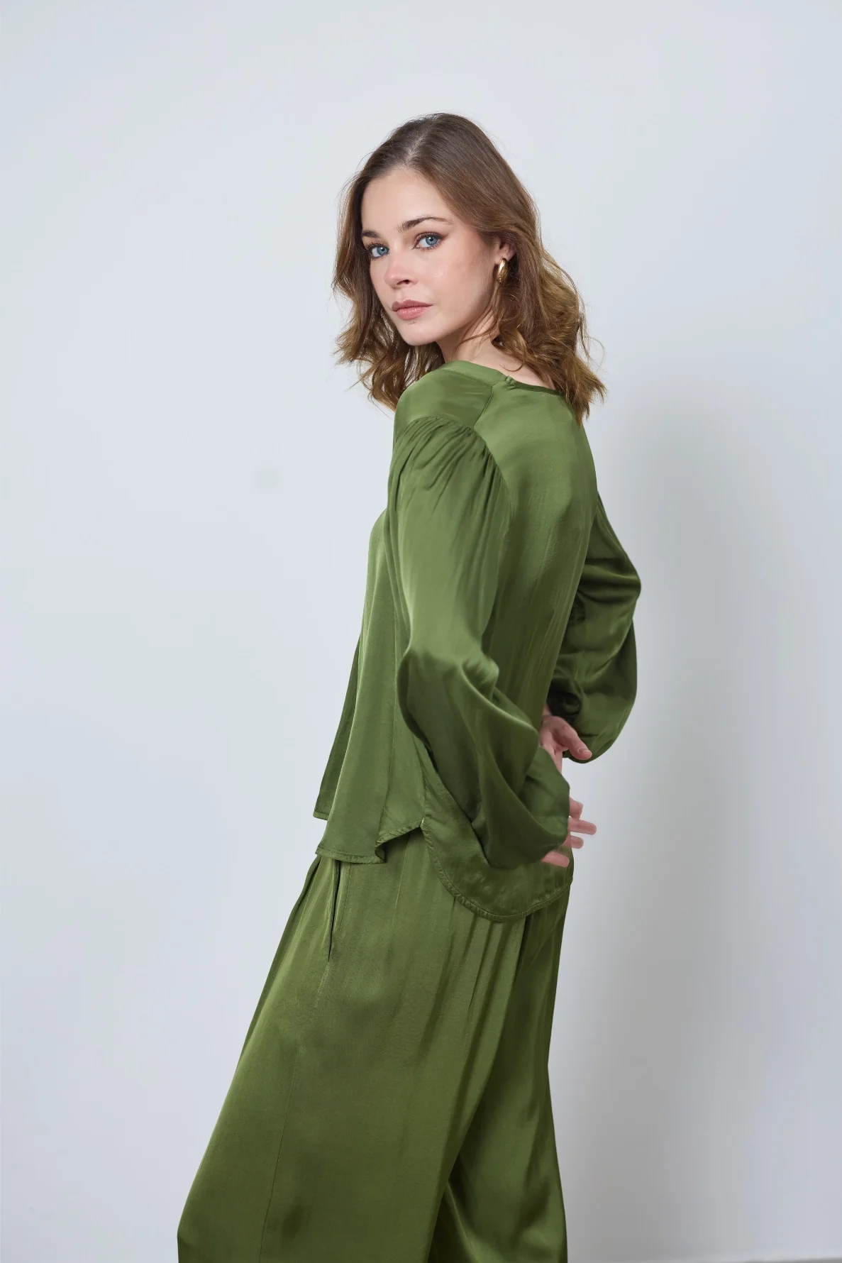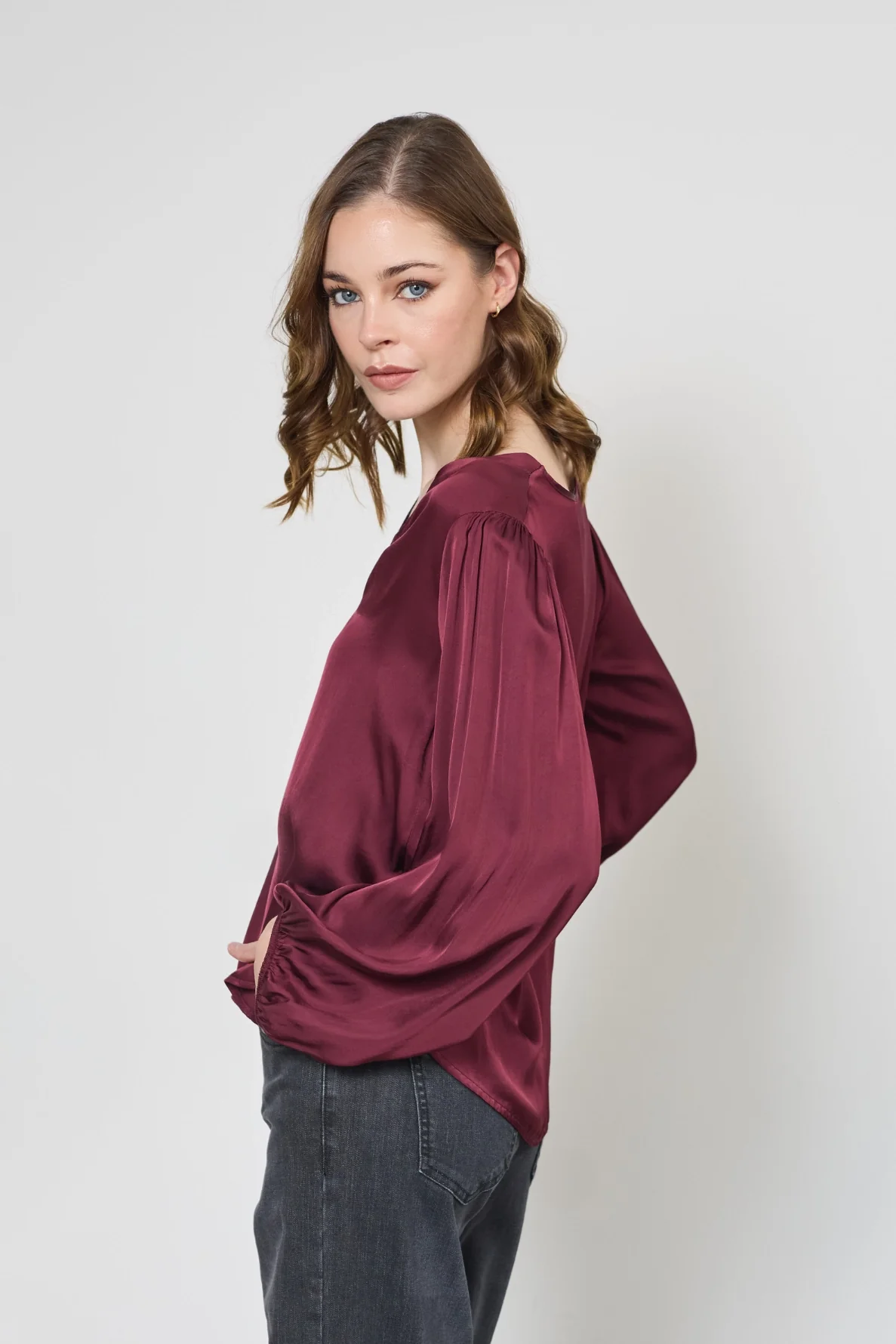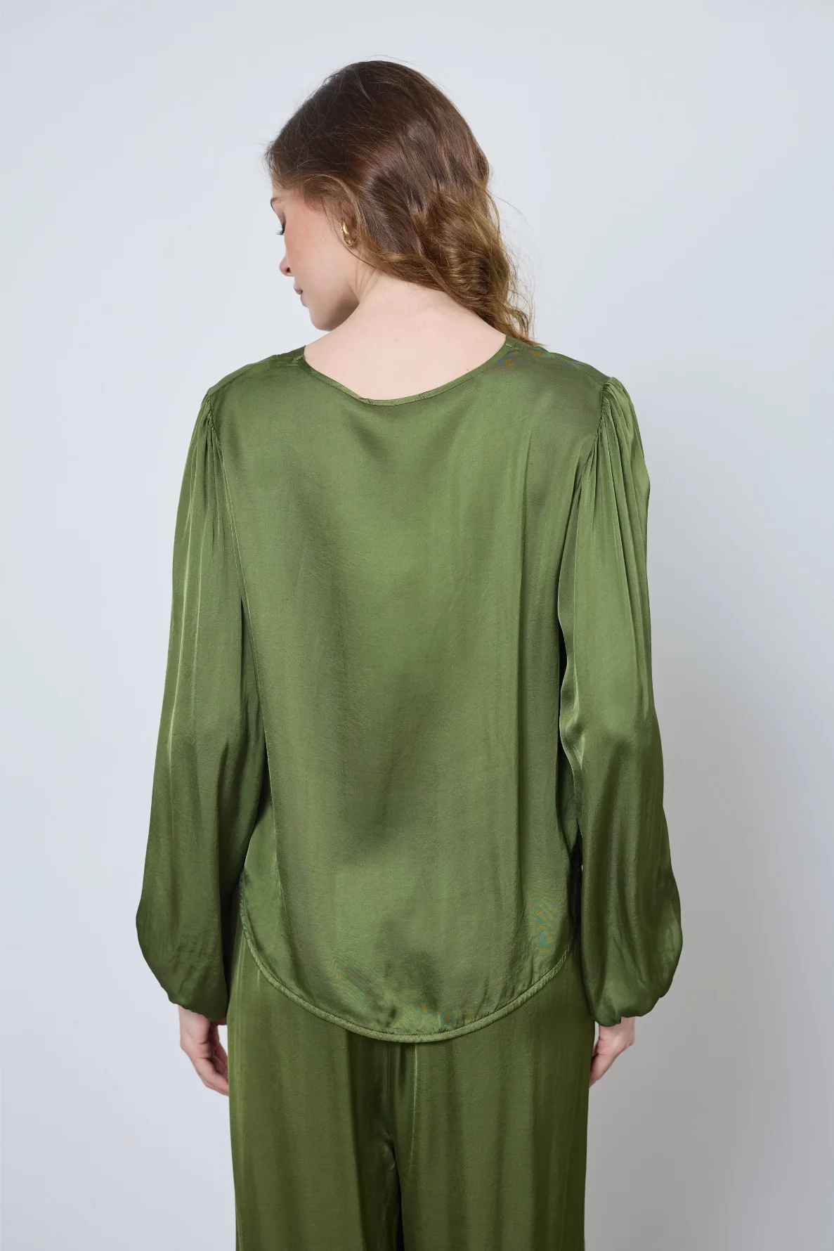 Fluide et élégante, la blouse Cécilia en satin offre douceur et confort. Son col en V et ses poignets élastiqués subliment toutes vos tenues avec raffinement.