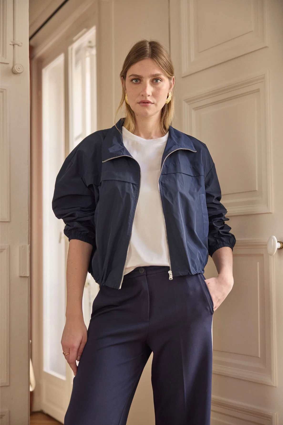 Ce blouson zippé combine confort et style. Sa coupe moderne et ajustée avec élastique au bas offre une silhouette flatteuse tout en restant pratique pour les journées fraîches.