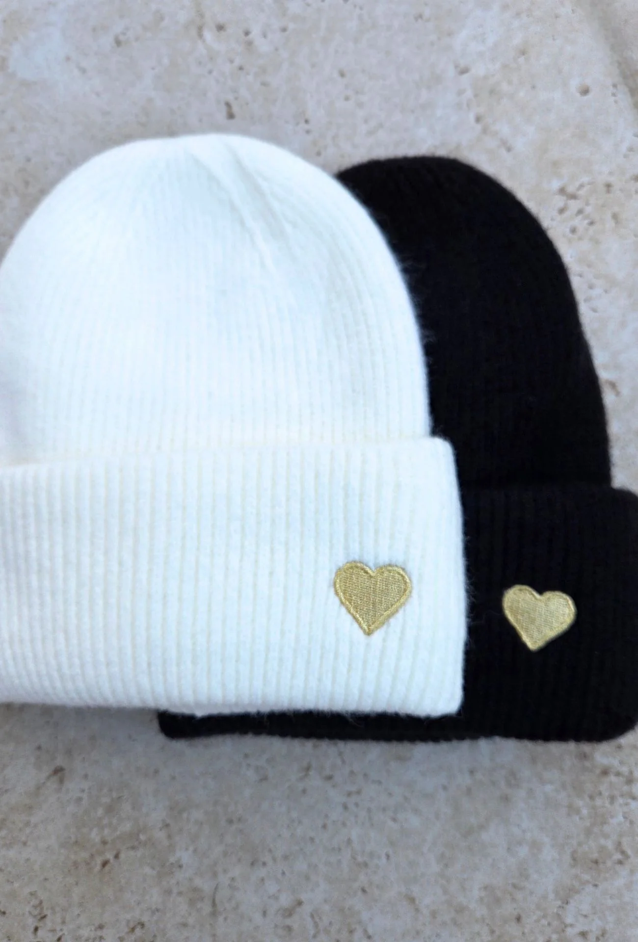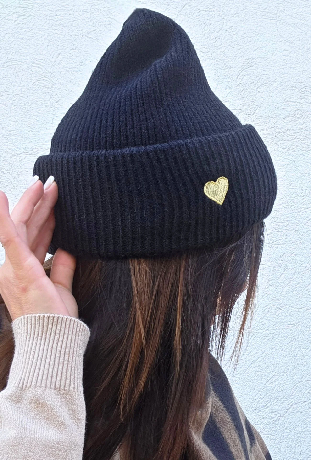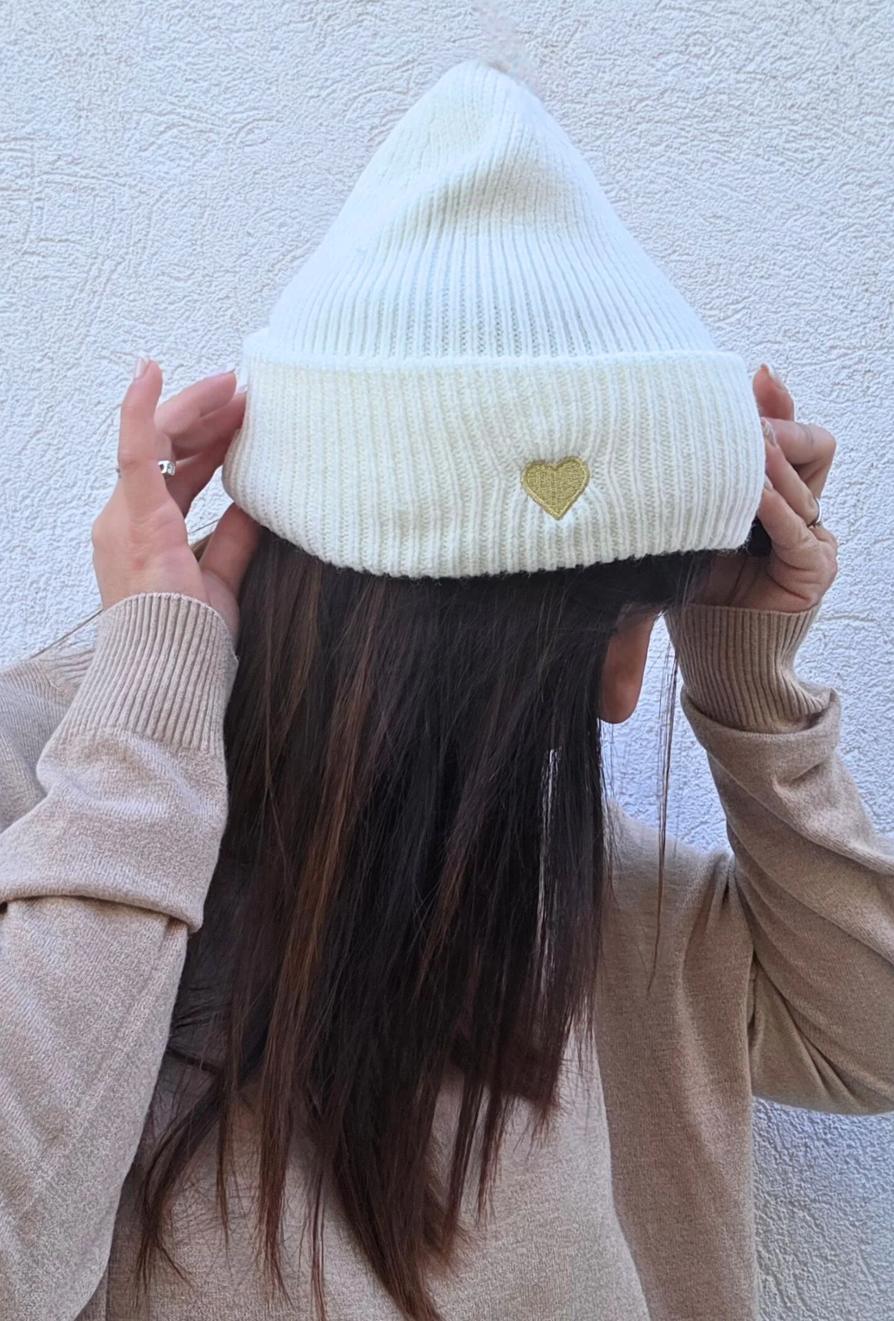 Ajoutez une touche de douceur à vos looks hivernaux avec le bonnet LOVE, un accessoire aussi réconfortant que stylé. Sa maille côtelée épaisse garantit chaleur et confort, tandis que son petit cœur doré brodé apporte une note féminine et pleine de charme.