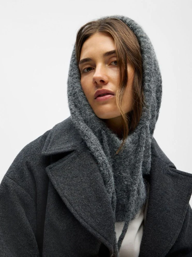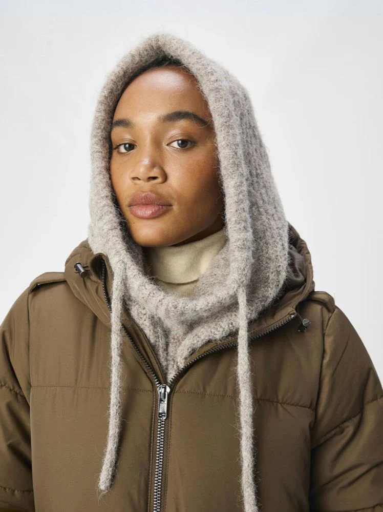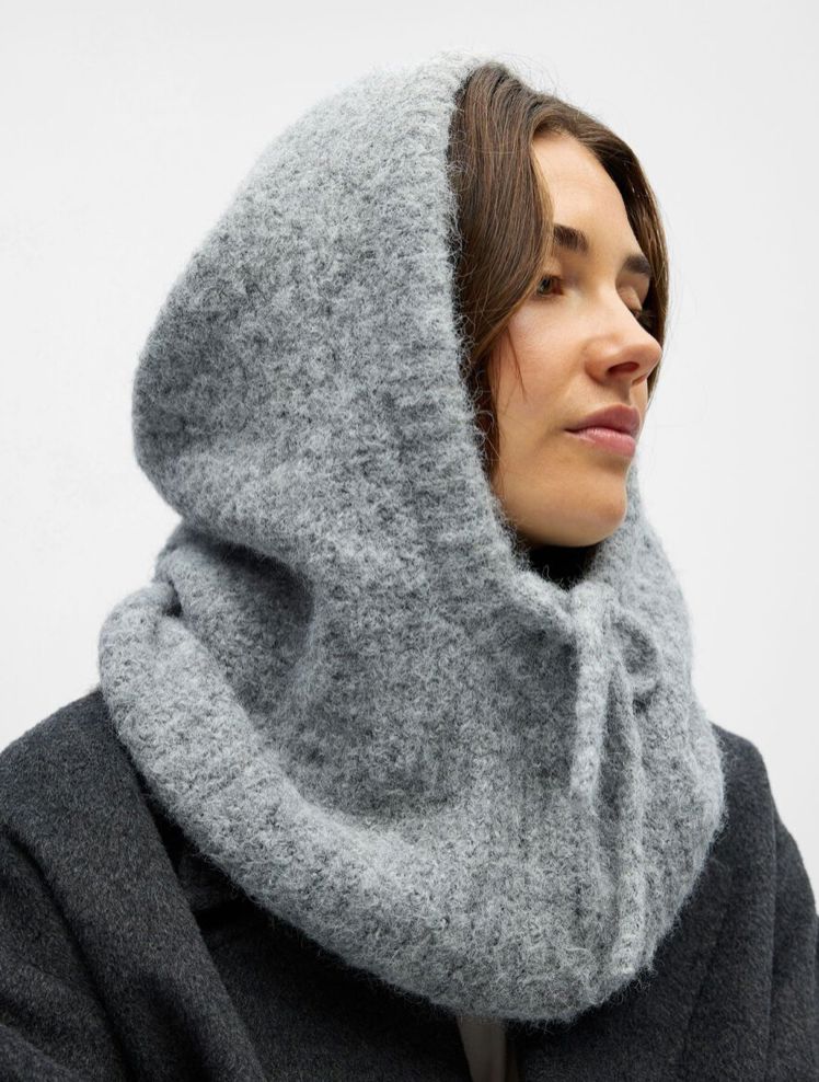 Cagoule en maille côtelée. Cordon de serrage. En tissus éco-responsables. Taille unique. Matières: 59% Polyester recyclé, 21% Nylon, 11% Polyester, 8% Laine, 1% Élasthanne