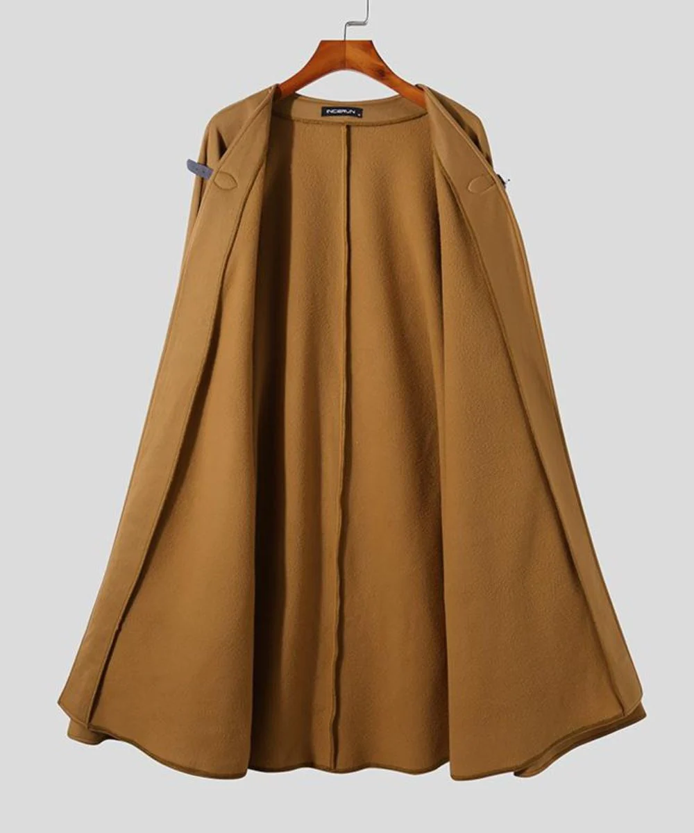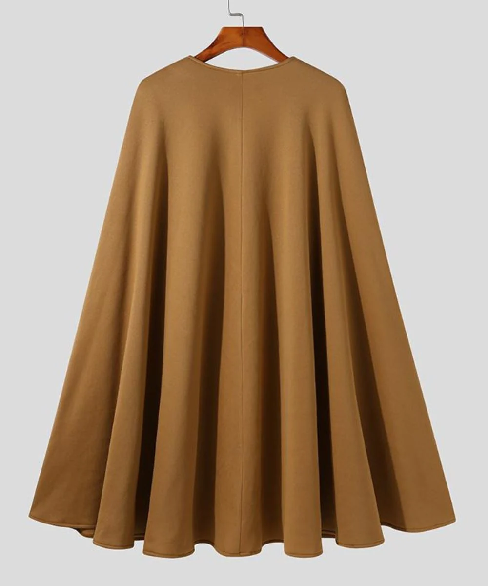 C’est un poncho teinte café classique pour homme, et son célèbre col en V le rend toujours aussi élégant et distingué.