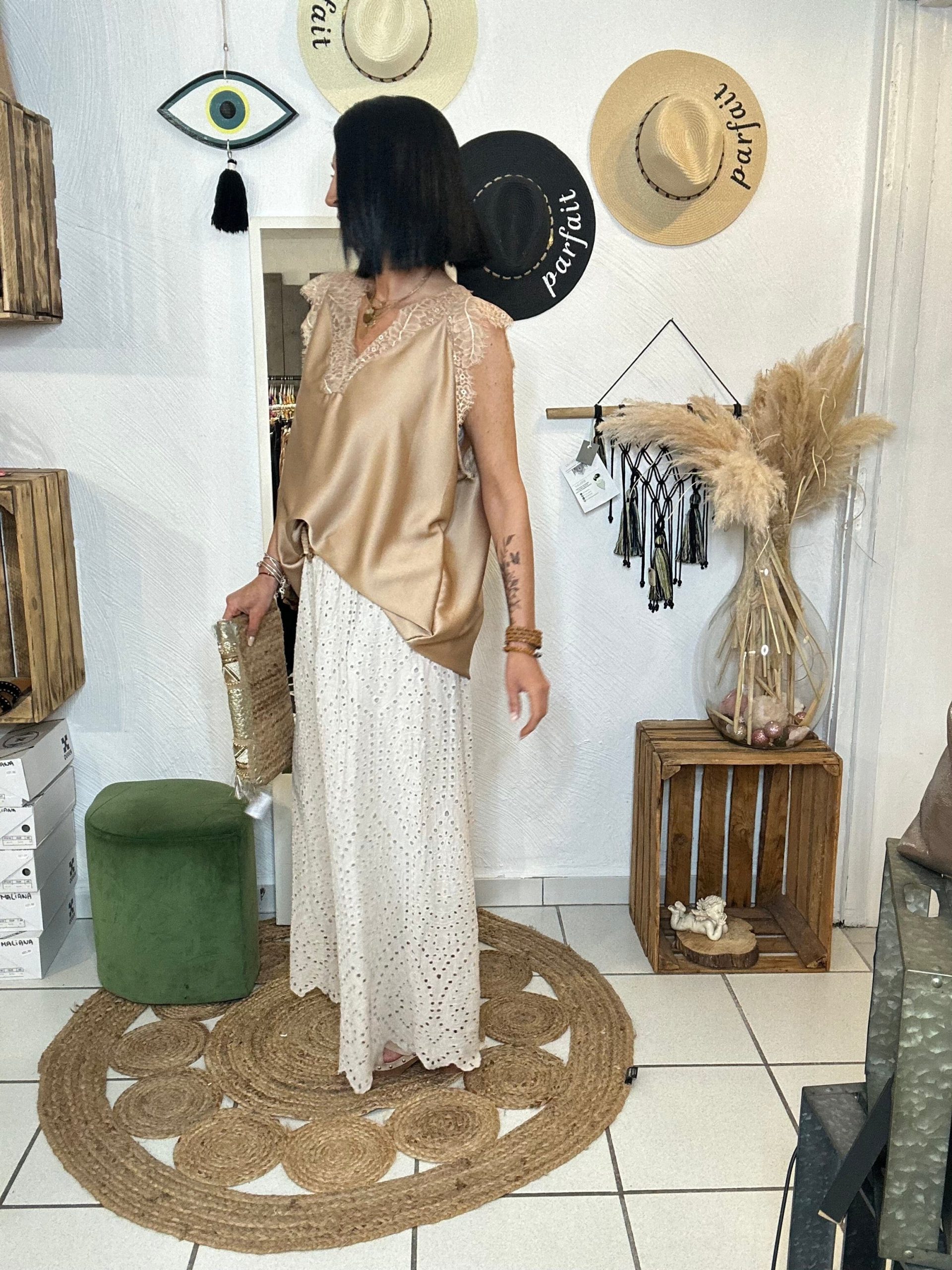 Le caraco reste une pièce intemporelle. Il peut se porter en toute saison avec un jean ou une jupe pour un look chic et décontracté. Description Coupe droite Col dentelle Tailles et coupes TU peux convenir d’un 38 à un 44 Composition 100 % polyester Entretien Se référer à l’étiquette de l’article Fabrication Fabriqué en […]