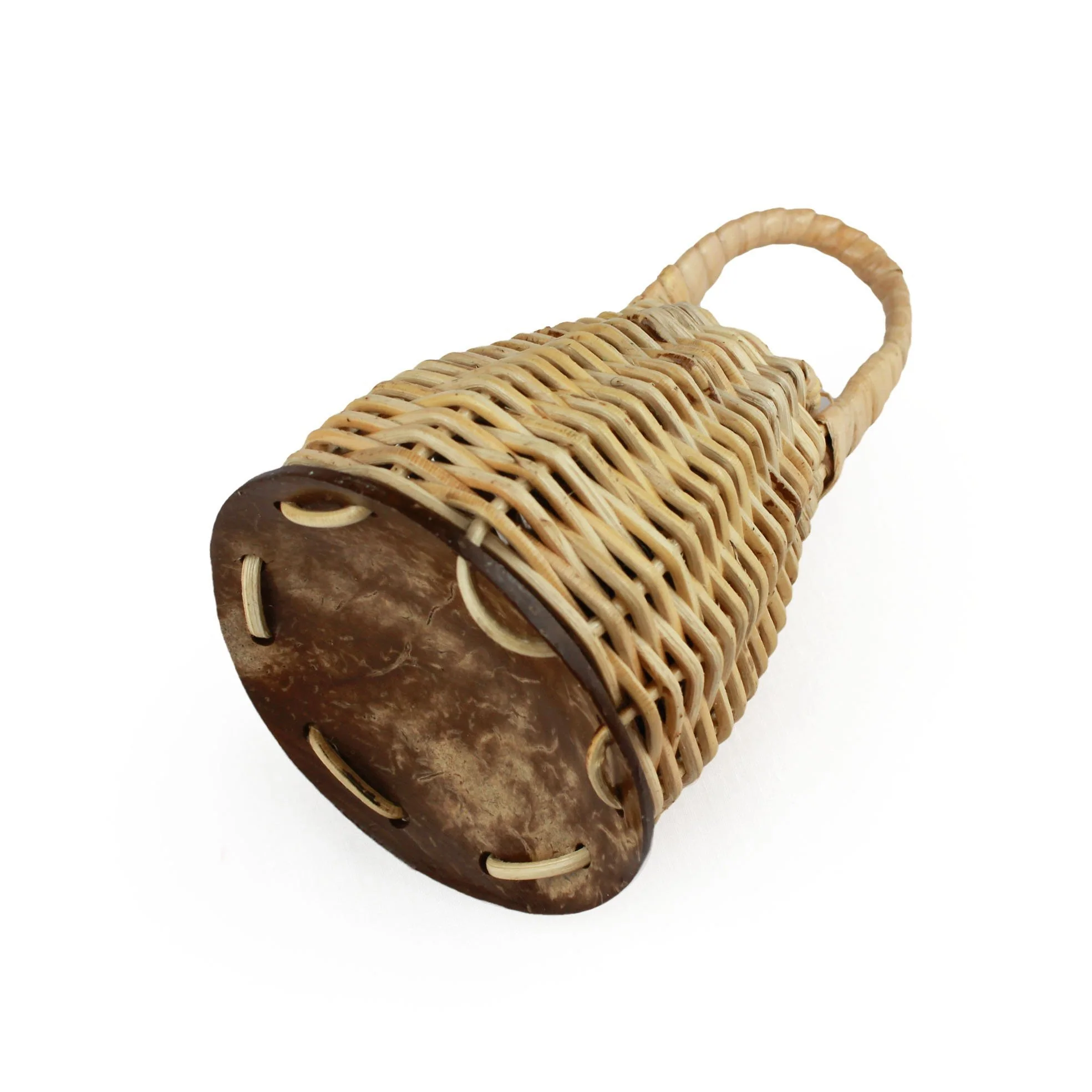 Instrument à percussion en rotin et coco, aussi appelé maraca est idéal pour expérimenter la musique et le rythme.
