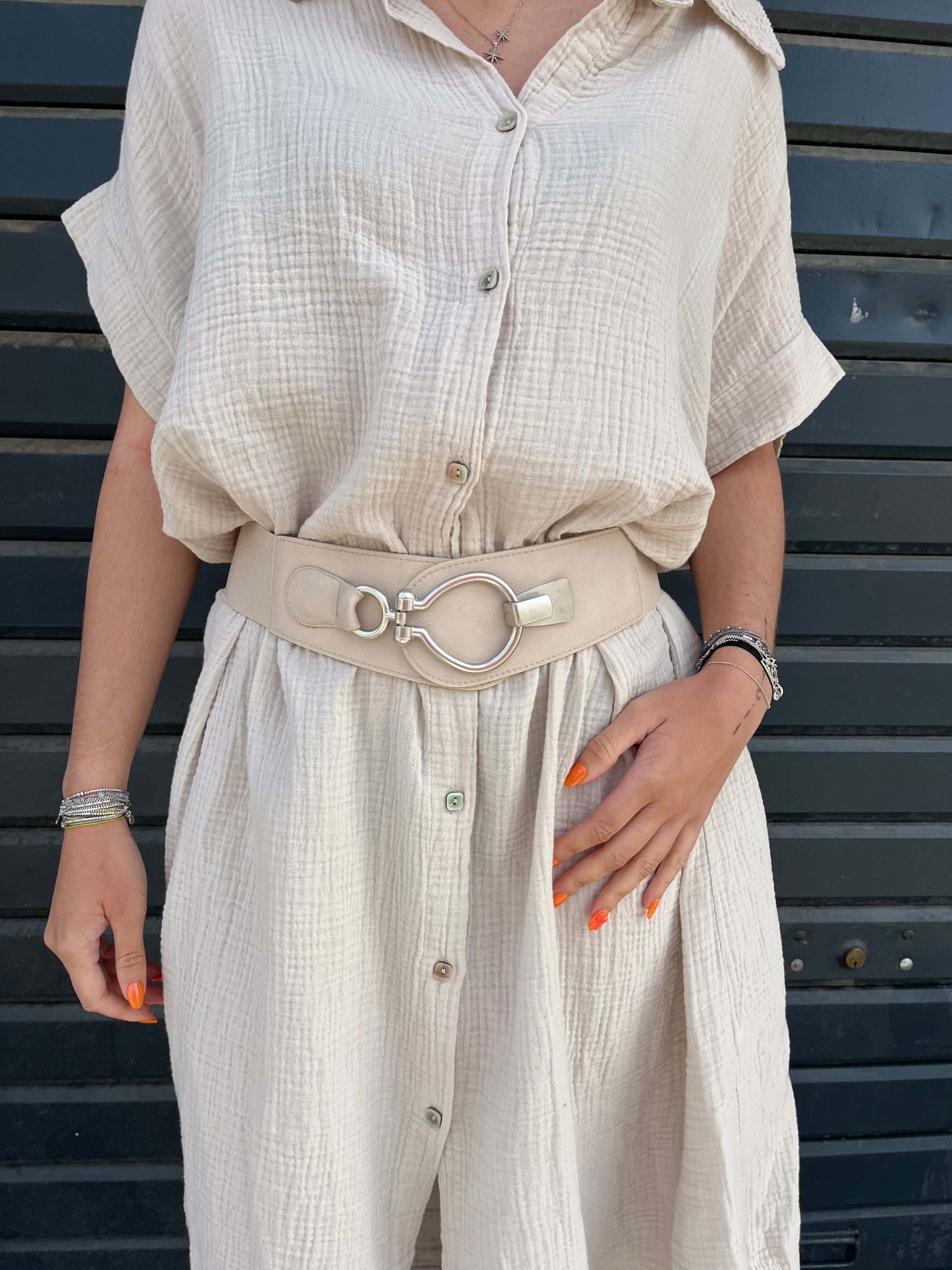 Ajoutez une touche de style tendance à vos tenues avec cette ceinture incroyablement stylée. Sa boucle lui donne une allure unique et elle est totalement réglable pour s’adapter parfaitement à ta taille. L’accessoire indispensable pour toutes les fashionistas.