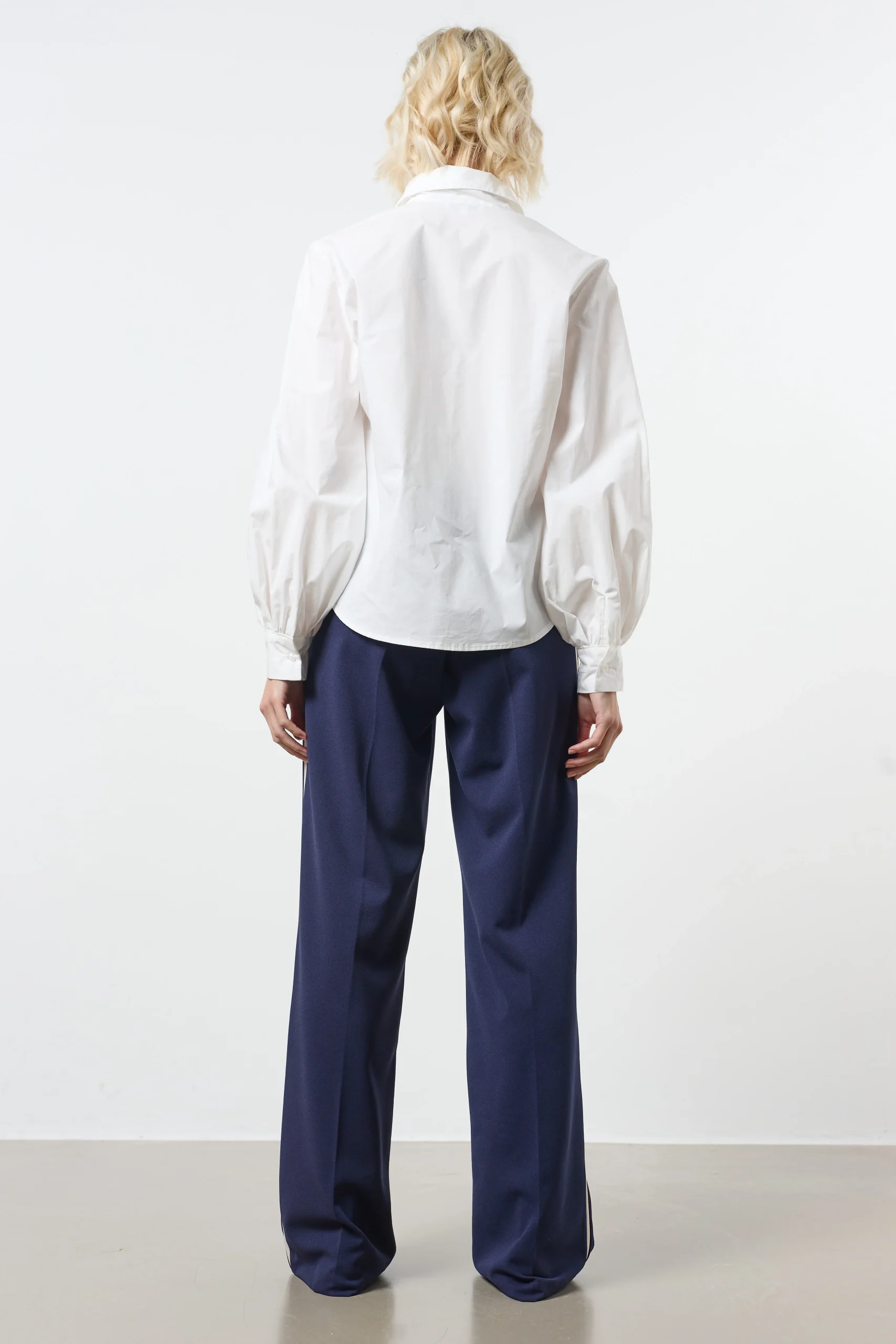 Chemise oversize en popeline off white, moderne et raffinée. Coupe ample et manches oversize pour un look décontracté et élégant au quotidien.