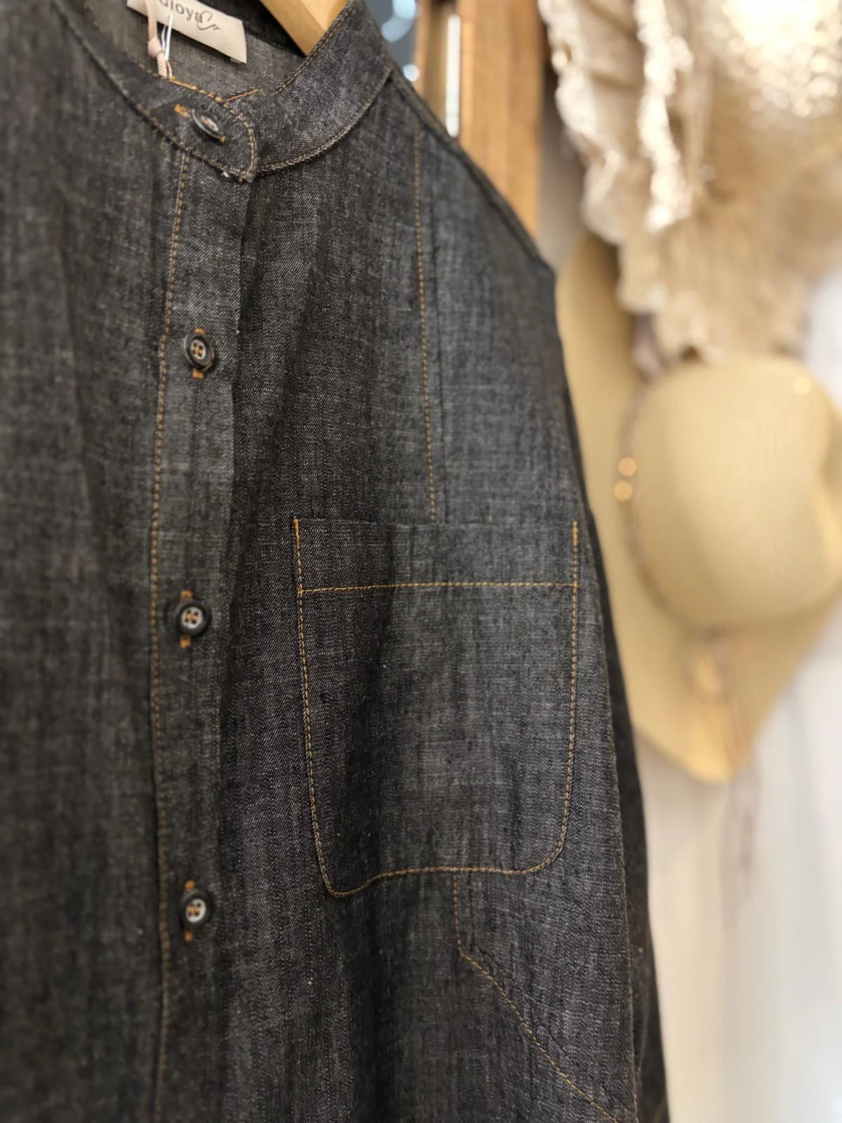 La chemise en jean grise est une pièce à la fois moderne et intemporelle, idéale pour un look chic et décontracté. Sa matière denim souple offre un confort optimal, tandis que son col Mao apporte une touche raffinée et contemporaine. Élégante et facile à porter, elle s’adapte parfaitement à toutes les silhouettes.