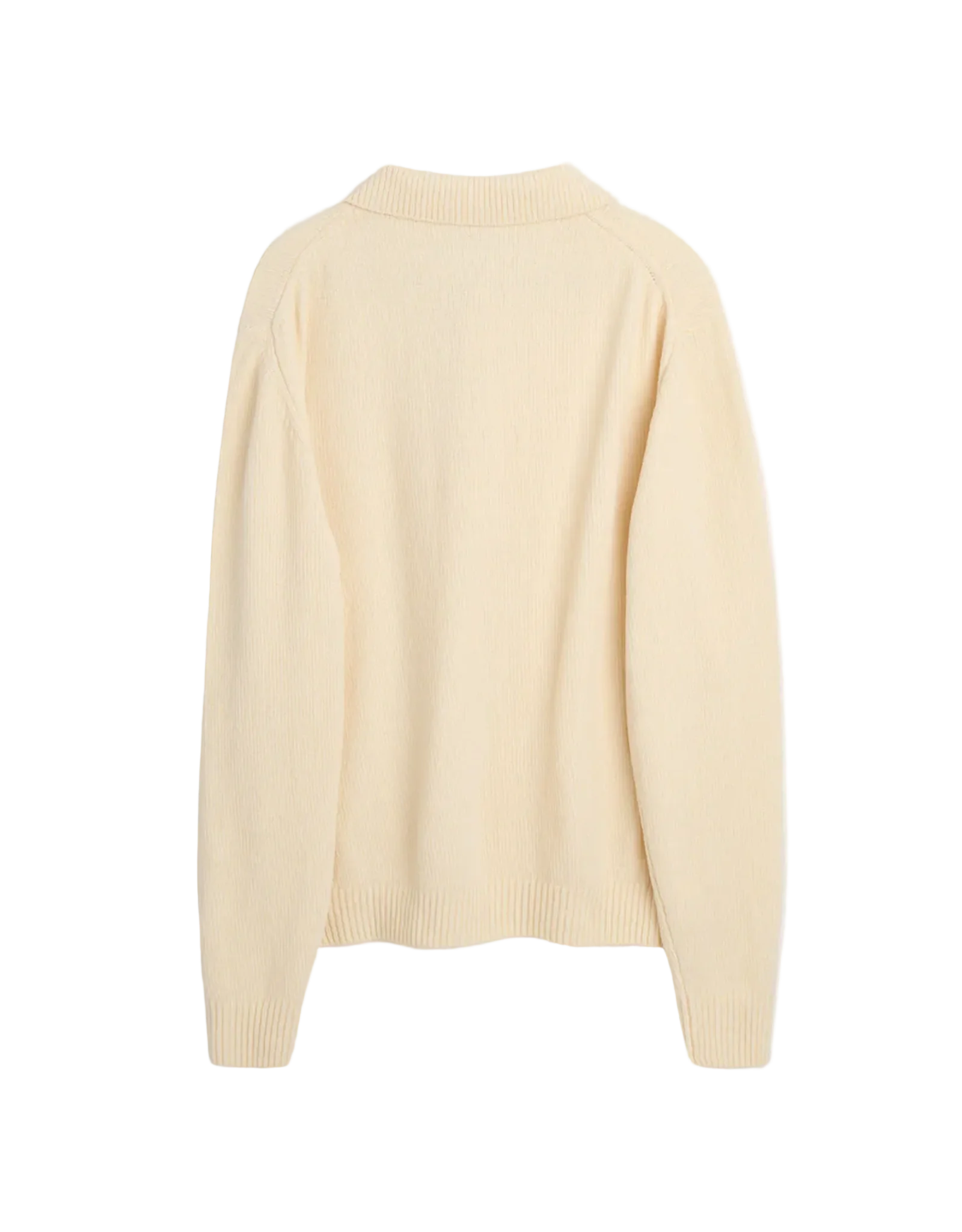 The Chenile Polo by SUNFLOWER er et raffineret stykke lavet af blødt chenille-bomuldsgarn, med italiensk børstet bomuldsgarn for et luksuriøst præg. Denne tidløse polo er pyntet med Corozo-knapper, hvilket tilføjer et elegant detalje til det underspillede design. Dens off-white nuance og sofistikerede konstruktion gør den til en alsidig garderobefavorit, der nemt løfter ethvert outfit med sin klassiske charme. Ideel til dem, der værdsætter subtil sofistikering og materialekvalitet i deres tøjvalg.
