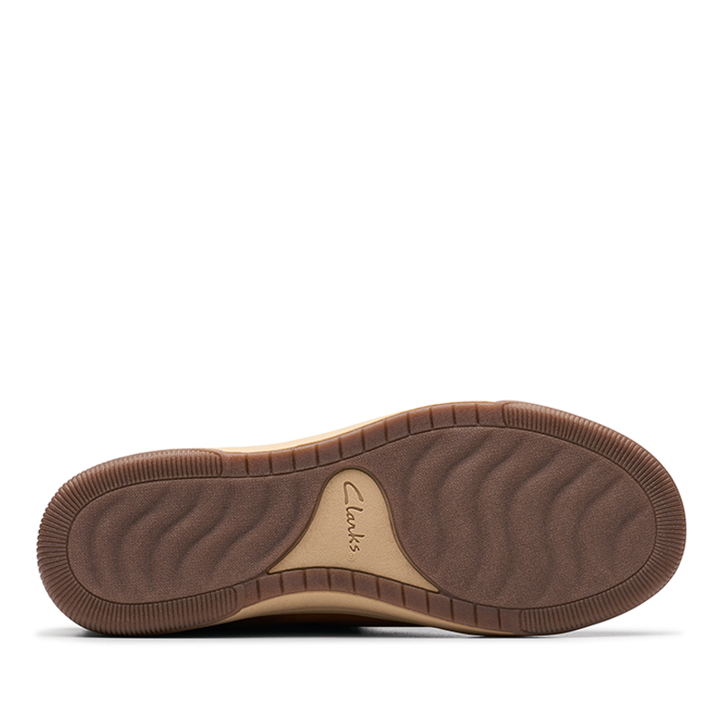 La tige en textile tan (beige chaud) apporte une touche élégante et facile à combiner, que ce soit avec une tenue détente ou un look décontracté pour sortir rapidement. Une fine rayure Breeze ajoute une signature visuelle propre à la collection Clarks Breeze.