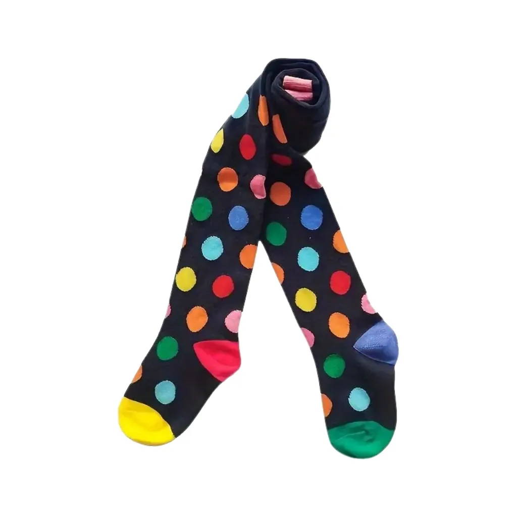 Ces collants à pois multicolores sont parfaits pour ajouter une touche fun et pleine de pep’s aux tenues de votre enfant. Avec leur fond noir, leurs pois colorés et leurs pointes contrastées, ils apportent un style original tout en restant confortables pour bouger toute la journée.