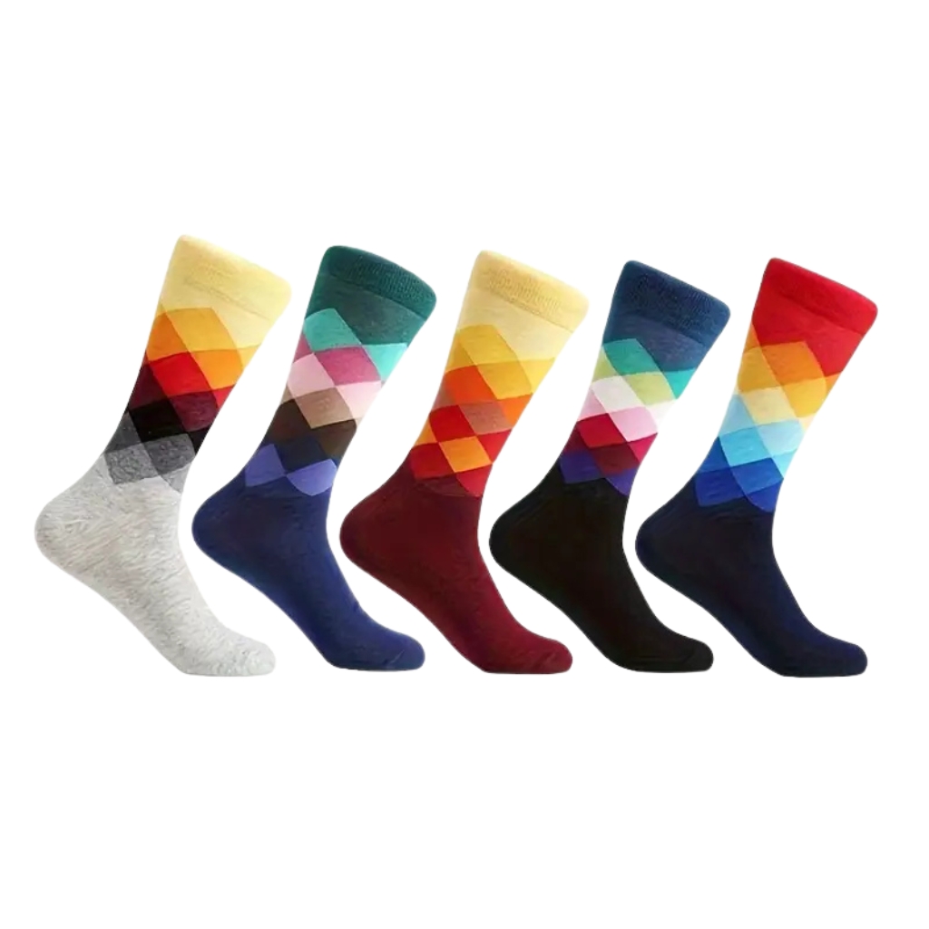 Donnez du relief à vos tenues avec ce lot de 5 paires au style coloré et affirmé. Les motifs géométriques et les dégradés vibrants apportent une vraie touche de personnalité, idéale pour ceux qui aiment un look original, moderne, et toujours élégant.