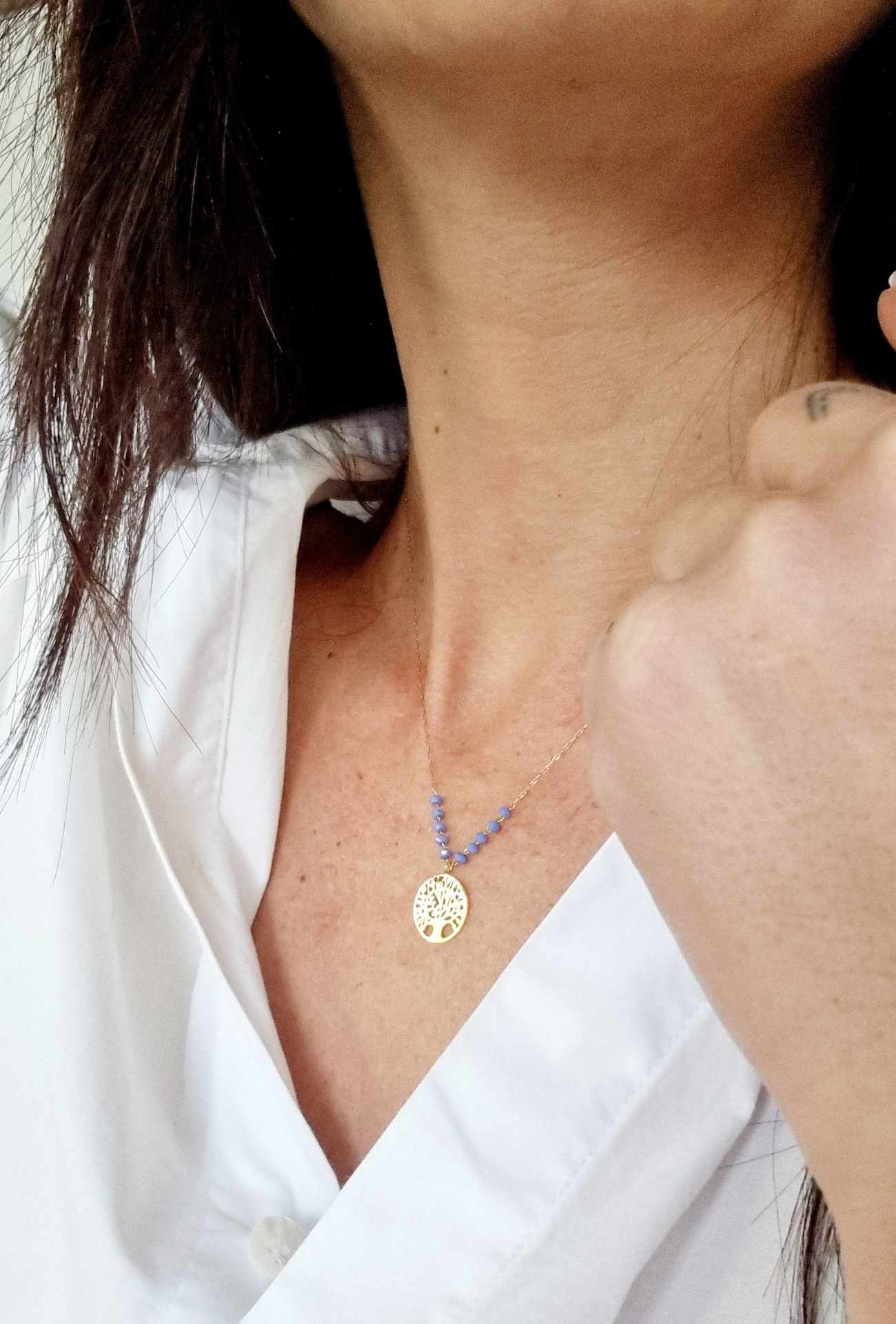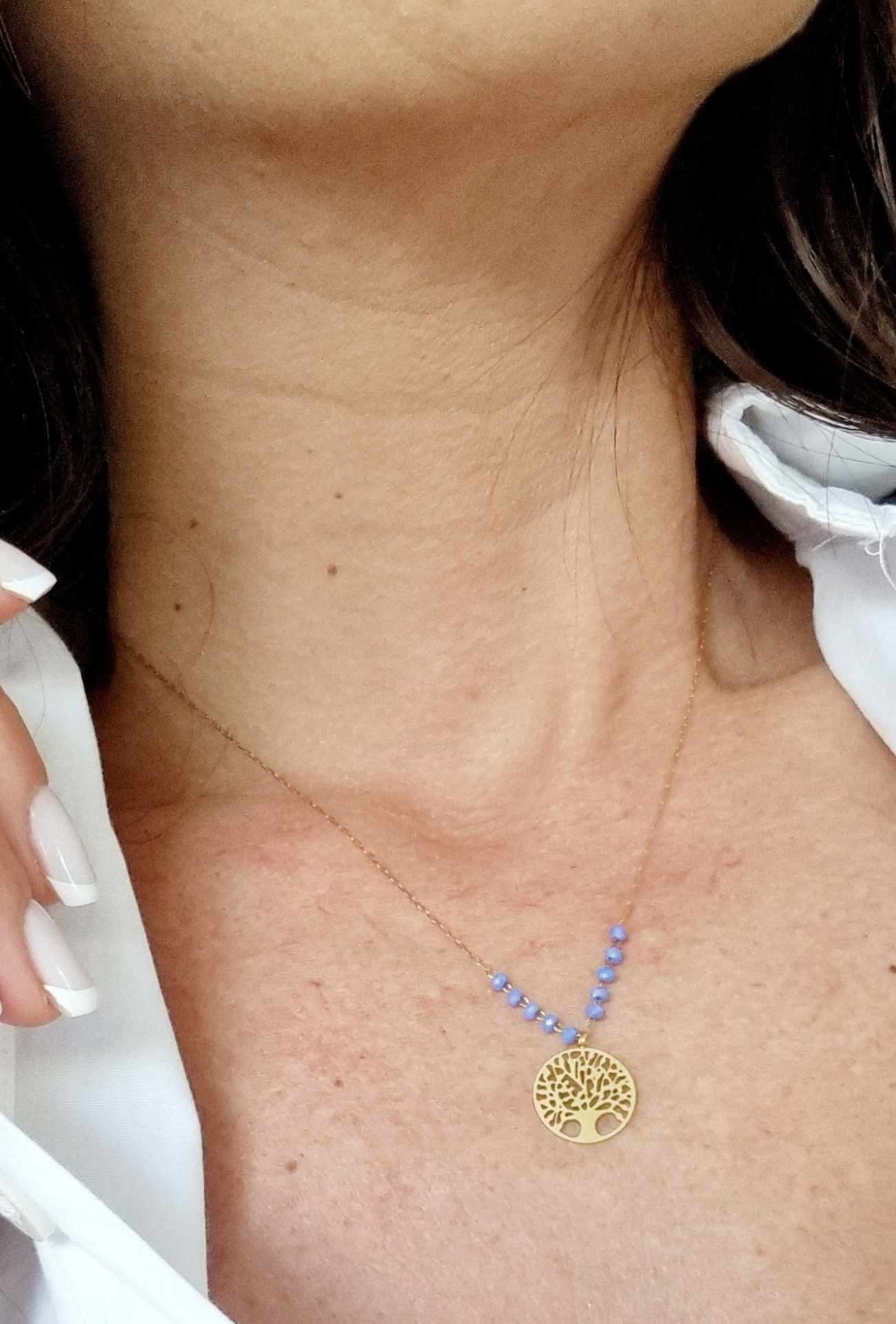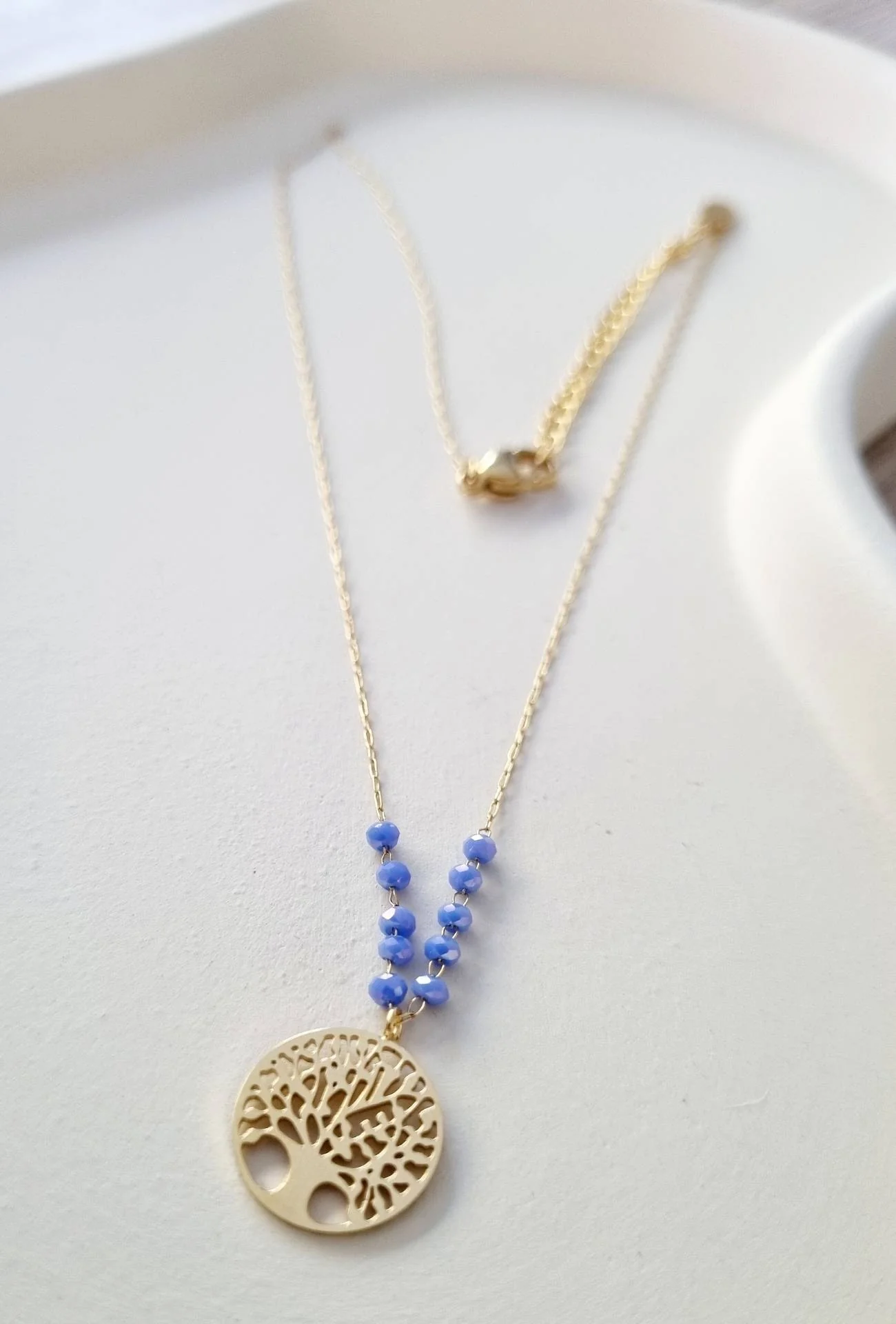 Ajoutez une touche de sérénité et de raffinement à votre style avec le collier LYDI. Son pendentif arbre de vie en acier inoxydable doré est rehaussé de perles bleu profond, évoquant calme et élégance. Ce bijou intemporel et symbolique est parfait pour sublimer vos tenues du quotidien ou pour des occasions spéciales avec une touche subtile et significative.