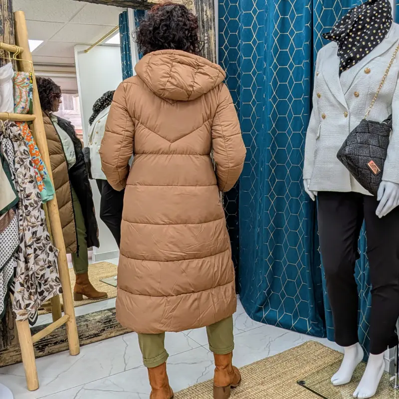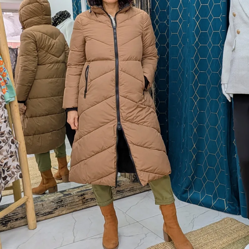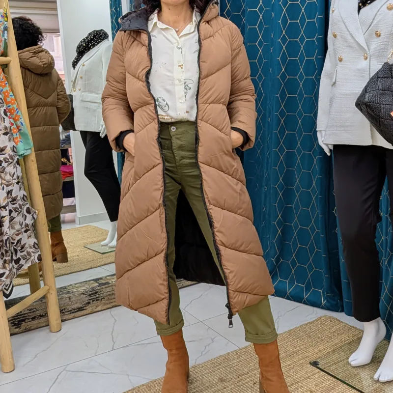 La doudoune longue camel est la pièce parfaite pour affronter les rigueurs de l’hiver tout en conservant une allure chic et moderne. Avec sa coupe légèrement évasée, elle offre une silhouette flatteuse qui s’adapte à toutes les morphologies. Ce modèle se distingue par sa capuche non détachable, qui protège efficacement du froid tout en ajoutant une touche de style.