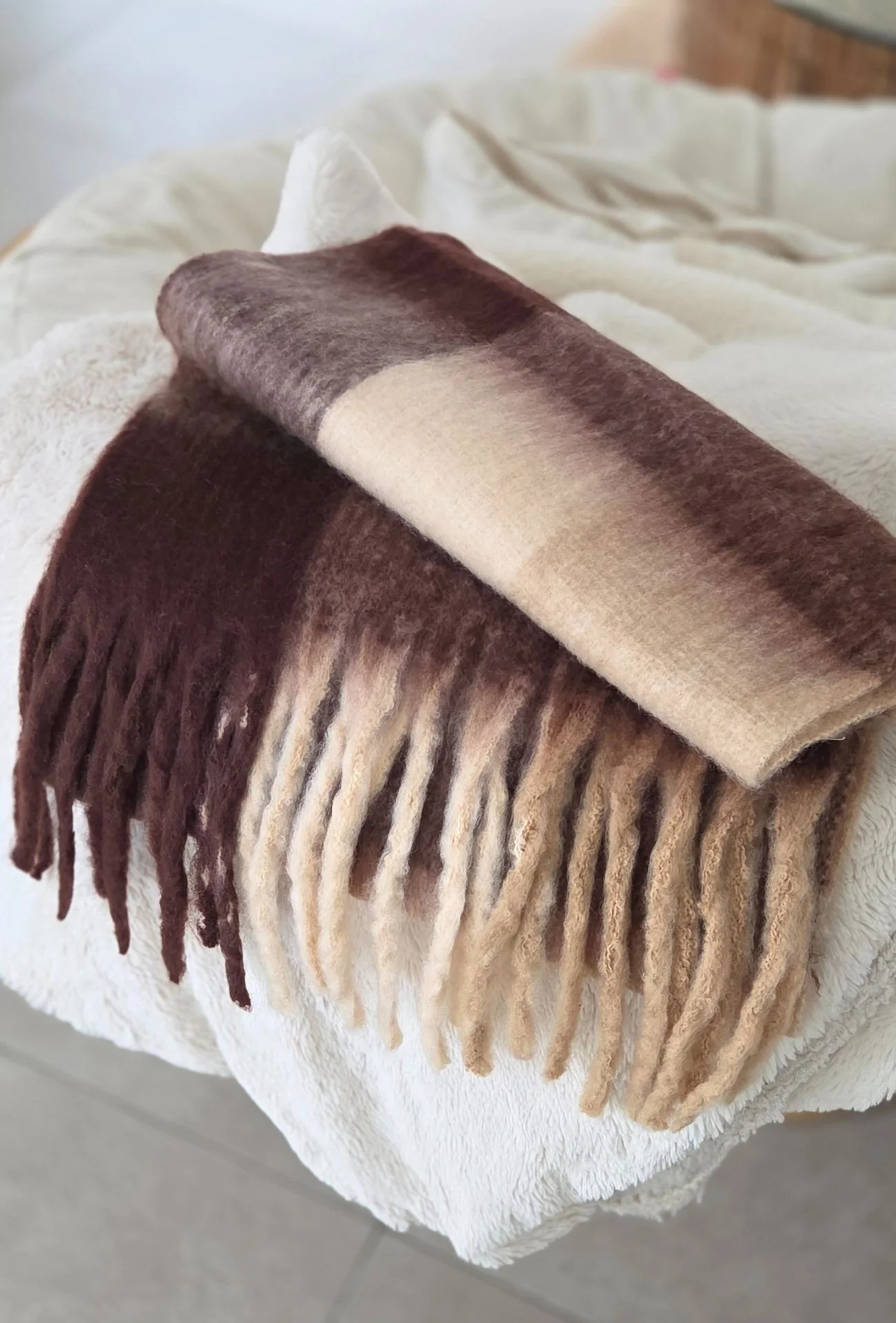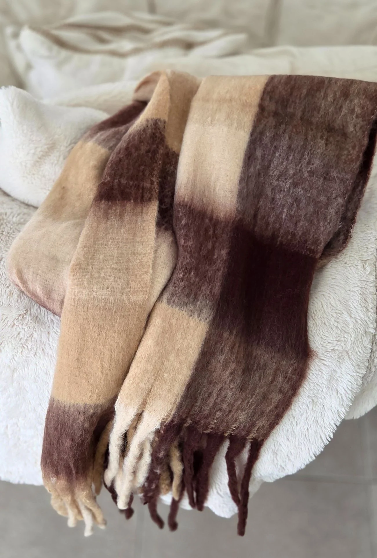 L’écharpe MELINA est la touche douceur qu’on adore ajouter à nos looks hivernaux. Avec son joli dégradé de tons chauds allant du beige au marron chocolat, elle réchauffe aussi bien le style que le cœur. Son motif à larges carreaux subtilement fondus évoque les teintes naturelles de l’automne, pour un look cosy et élégant en toute simplicité.