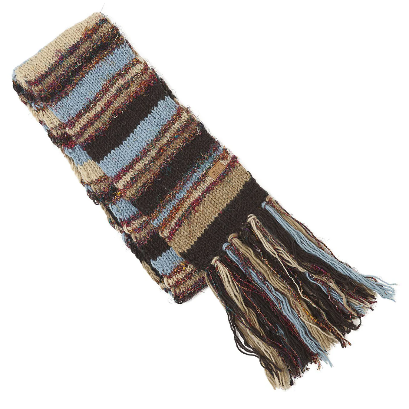 Ce foulard fait de laine, de soie recyclée colorée et de sa doublure de polar est une alliance parfaite de confort, chaleur et style. Avec ses mitaines, jambières et tuque coordonnées, l’agencement vous donnera un look élégant et confortable. Tricoté à la main au Népal. Commerce Équitable.