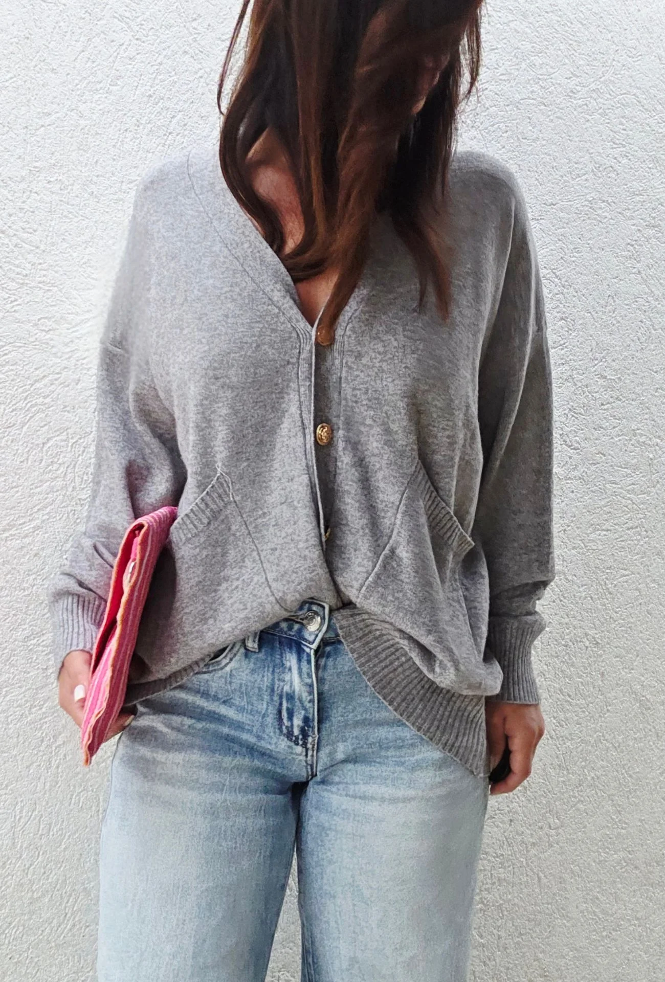 Minimaliste, doux et ultra facile à porter, le gilet JADE est la pièce cocooning à intégrer d’urgence dans votre vestiaire. Sa maille fine et souple, son tombé fluide et ses finitions soignées en font un basique de qualité à revisiter en toutes saisons. Son gris chiné élégant se marie avec tout, tandis que ses jolis boutons dorés apportent une touche lumineuse et féminine.