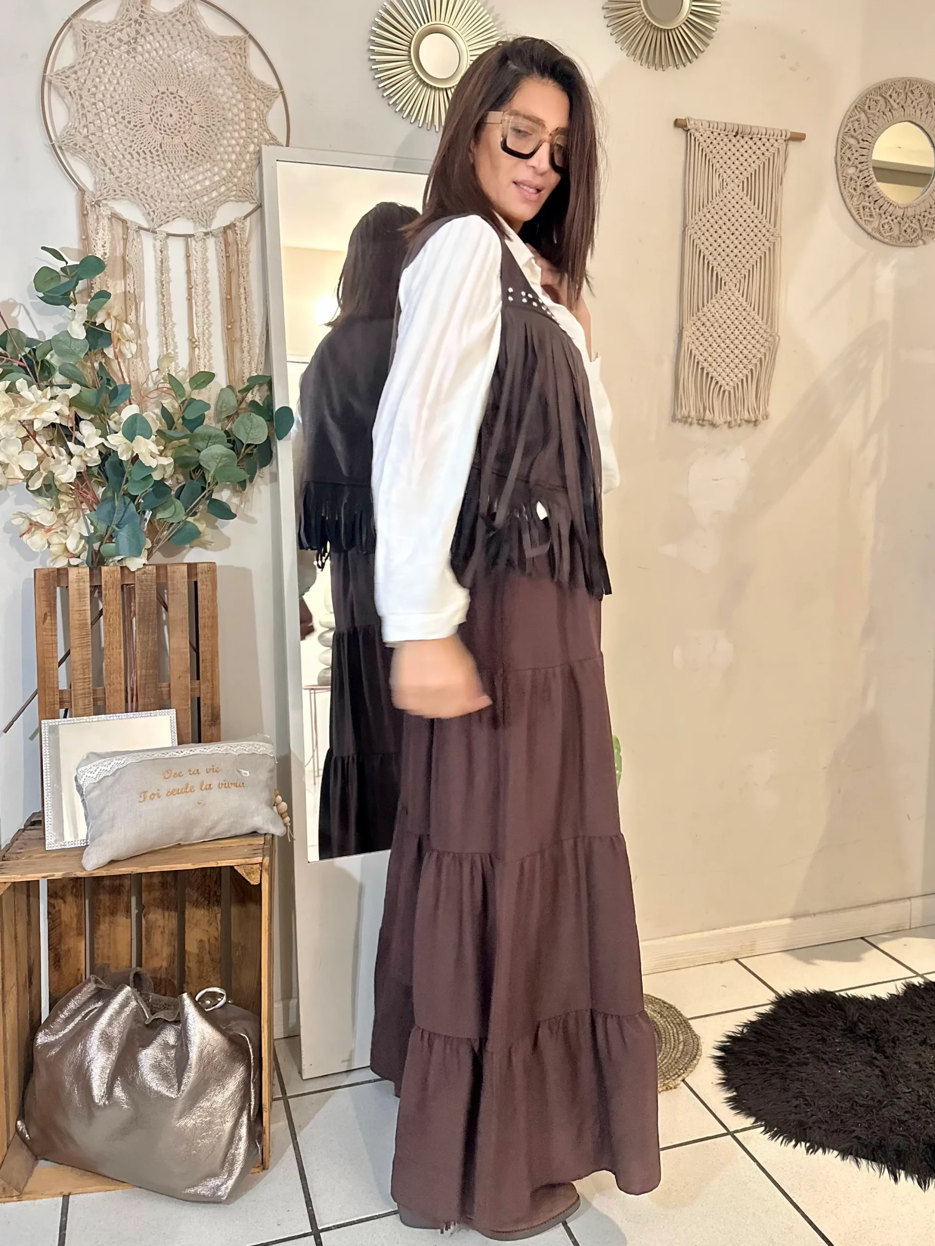 Le gilet TEXAS est une pièce forte et originale. Il offre confort et style, idéal pour différentes occasions. Avec sa coupe décontractée, il se marie parfaitement avec un jean pour un look casual Sa matière en fait un choix parfait pour tous les jours. C’est un incontournable du dressing moderne ! Description Sans manche Col […]