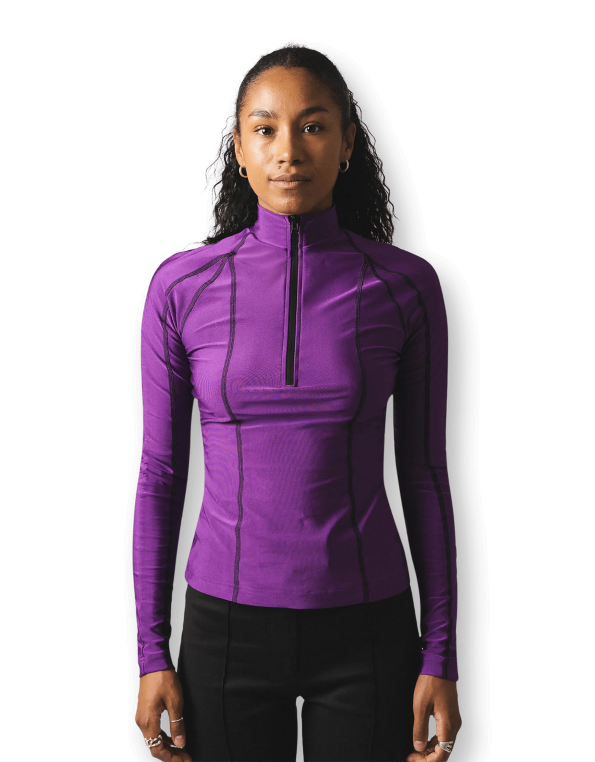 The Oval Square Gym Blouse byder på et stilrent og atletisk udtryk med sit strømlinede design. Fremstillet i strækbart nylon, sikrer denne bluse en tætsiddende pasform—perfekt til både træning og hverdagsbrug. Den høje hals med lynlås giver et moderne præg, mens kontrastfulde sorte flatlock-sømme fremhæver det sporty look. Ideel for dem, der går op i både stil og funktionalitet; denne bluse integreres ubesværet i enhver activewear-garderobe og løfter dit outfit med sit sofistikerede design.