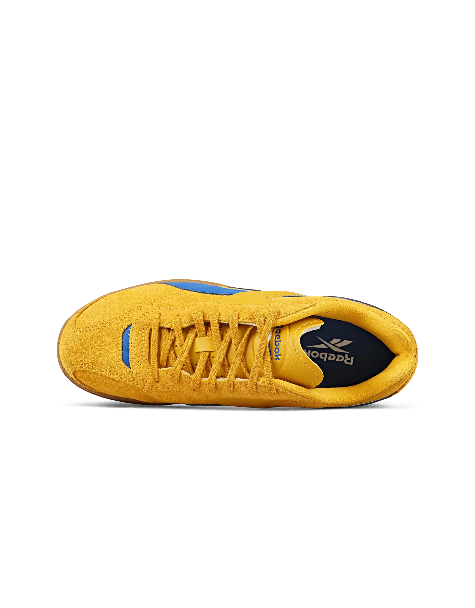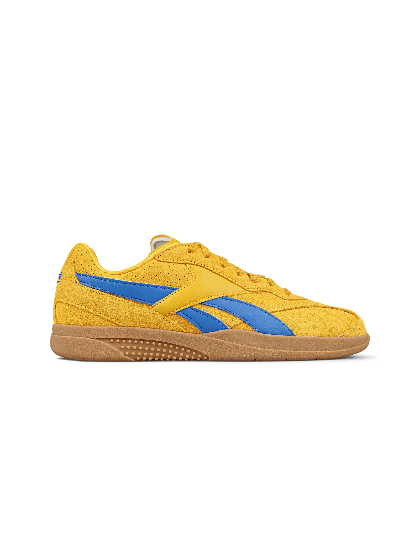 The Reebok Hammer Street i Fiercegold/Vecotrblu er en stilfuld hyldest til 90’ernes indendørs fodbold og streetwear. Fremstillet i en holdbar kombination af coated læder og ruskind, giver den et markant og premium look. Den tekstile foring sikrer komfort, mens EVA-mellemsålen giver god støddæmpning. Den forstærkede T-toe cap øger holdbarheden, og gummiydersålen forbedrer greb og stil. Denne sneaker genopliver det klassiske Hammer-design fra 1993 og blander arv med moderne modesanser.