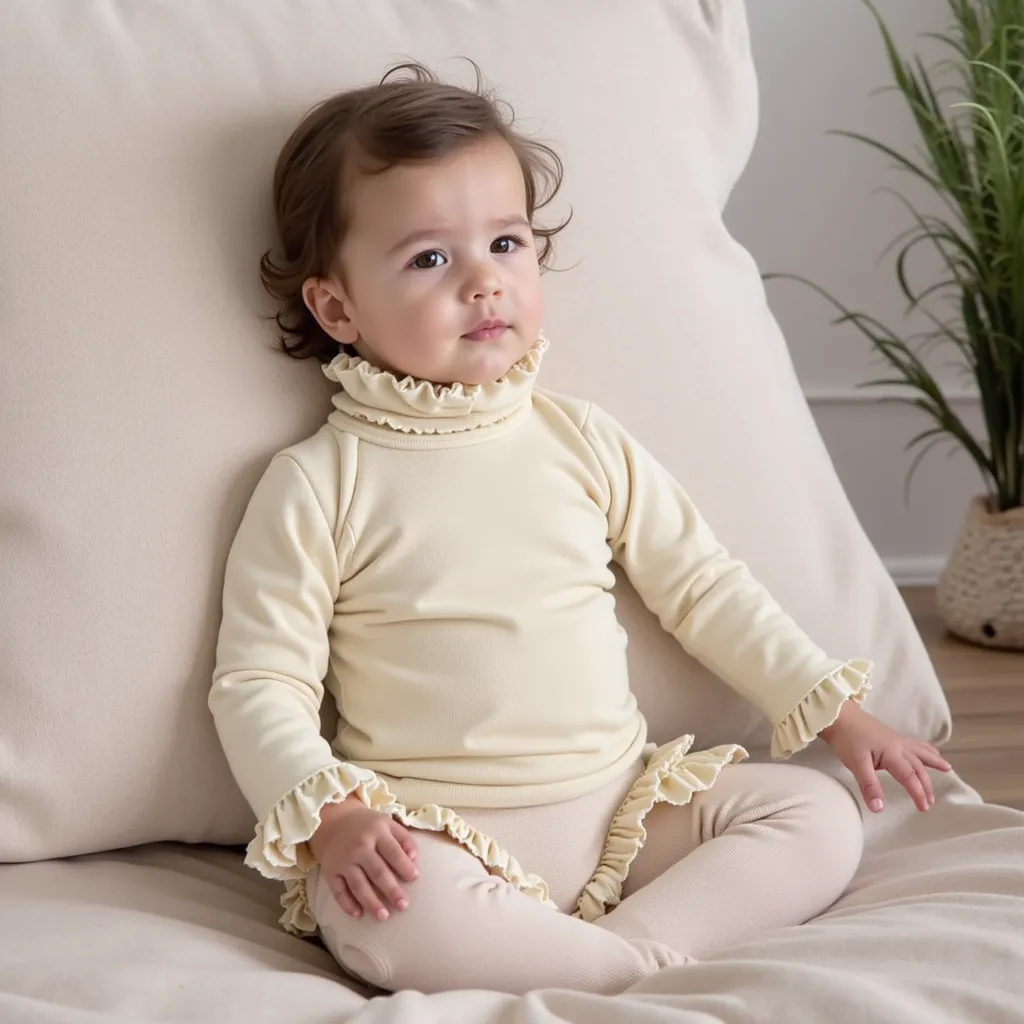 Ce haut bébé jaune doux avec col montant froncé et jolis volants apporte une touche élégante tout en restant super agréable à porter. Parfait au quotidien comme pour une petite occasion, il donne tout de suite un style soigné à la tenue de votre tout-petit, sans sacrifier le confort.