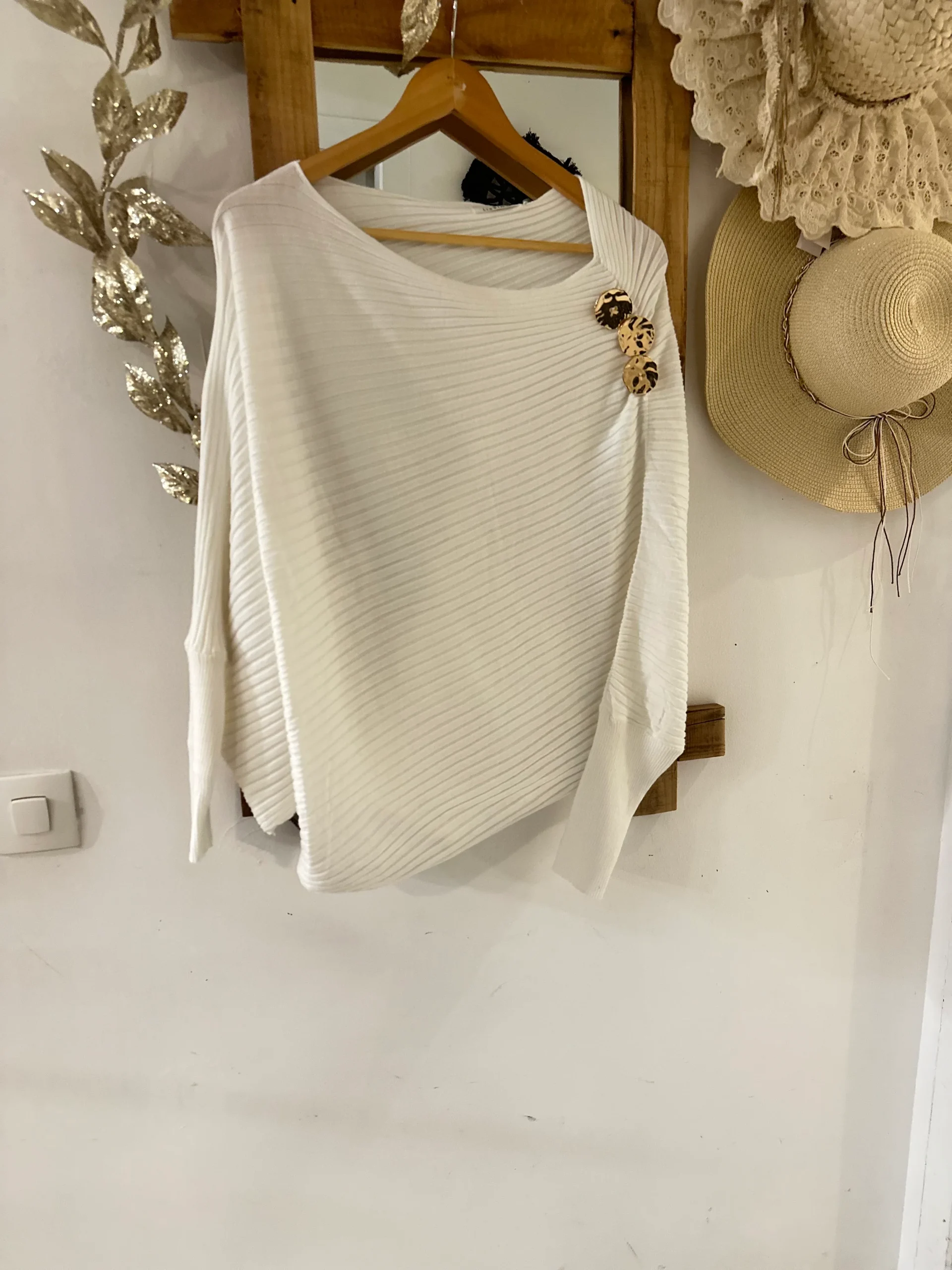 Le haut Laure est une pièce élégante et versatile, parfaite pour apporter style et sophistication à vos tenues. Doté de poignets resserrés et d’une breloque sur l’épaule, il offre un détail raffiné qui attire l’œil. Le col peut se porter selon vos envies, retombant sur l’épaule ou couvrant délicatement, pour un look adaptable et féminin.