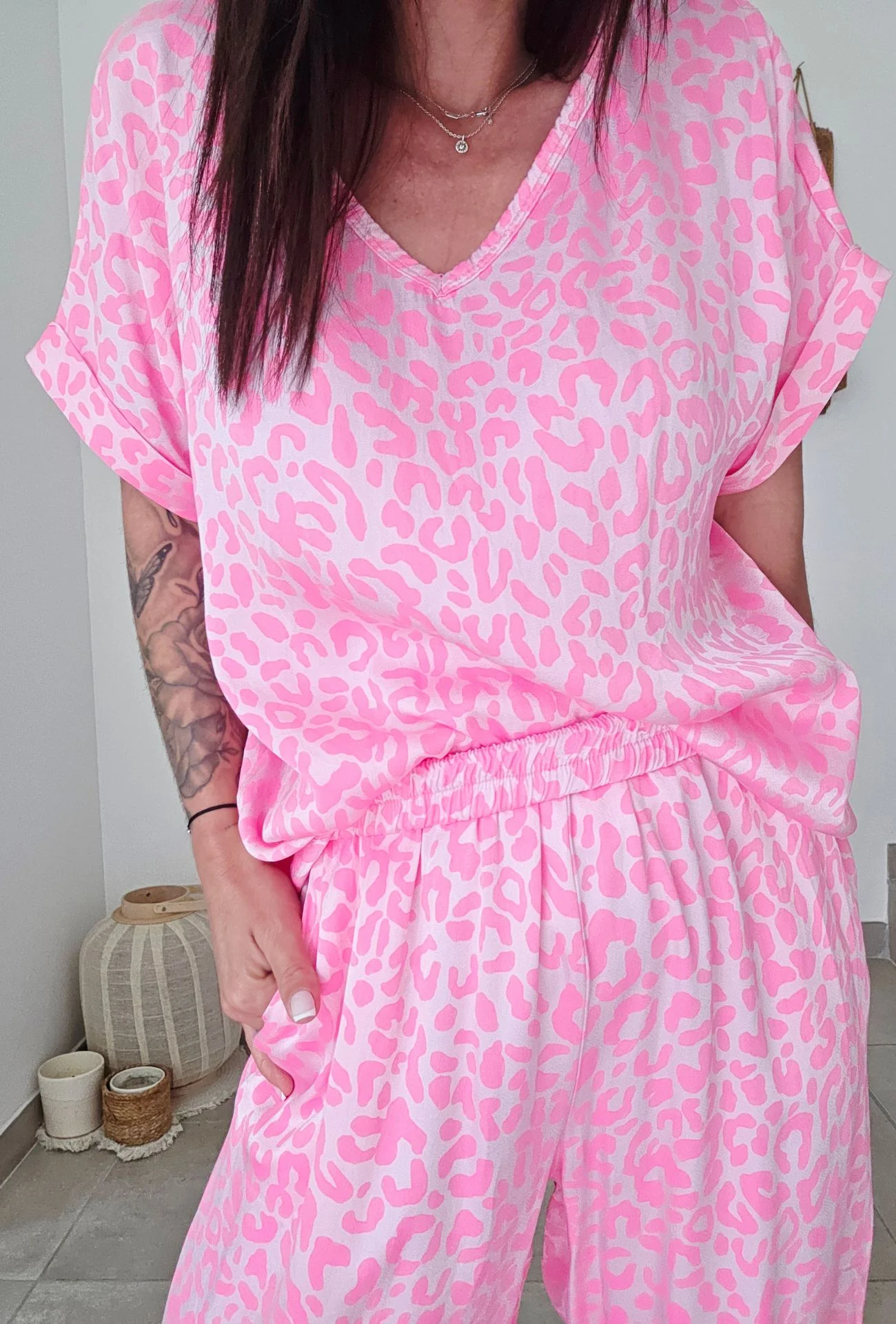 Boostez vos looks avec le haut ROXANE rose fluo, une pièce ultra tendance qui ne passe pas inaperçue. Sa coupe ample et fluide, associée à un col en V féminin, met en valeur toutes les morphologies tout en assurant un confort optimal. Son imprimé animalier ton sur ton ajoute une touche sauvage et fun, parfaite pour insuffler une énergie pop à votre garde-robe estivale.
