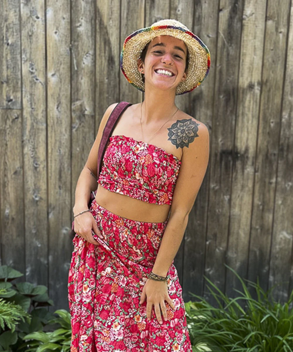 Haut tube 100% rayonne avec élastique en nid d’abeille.