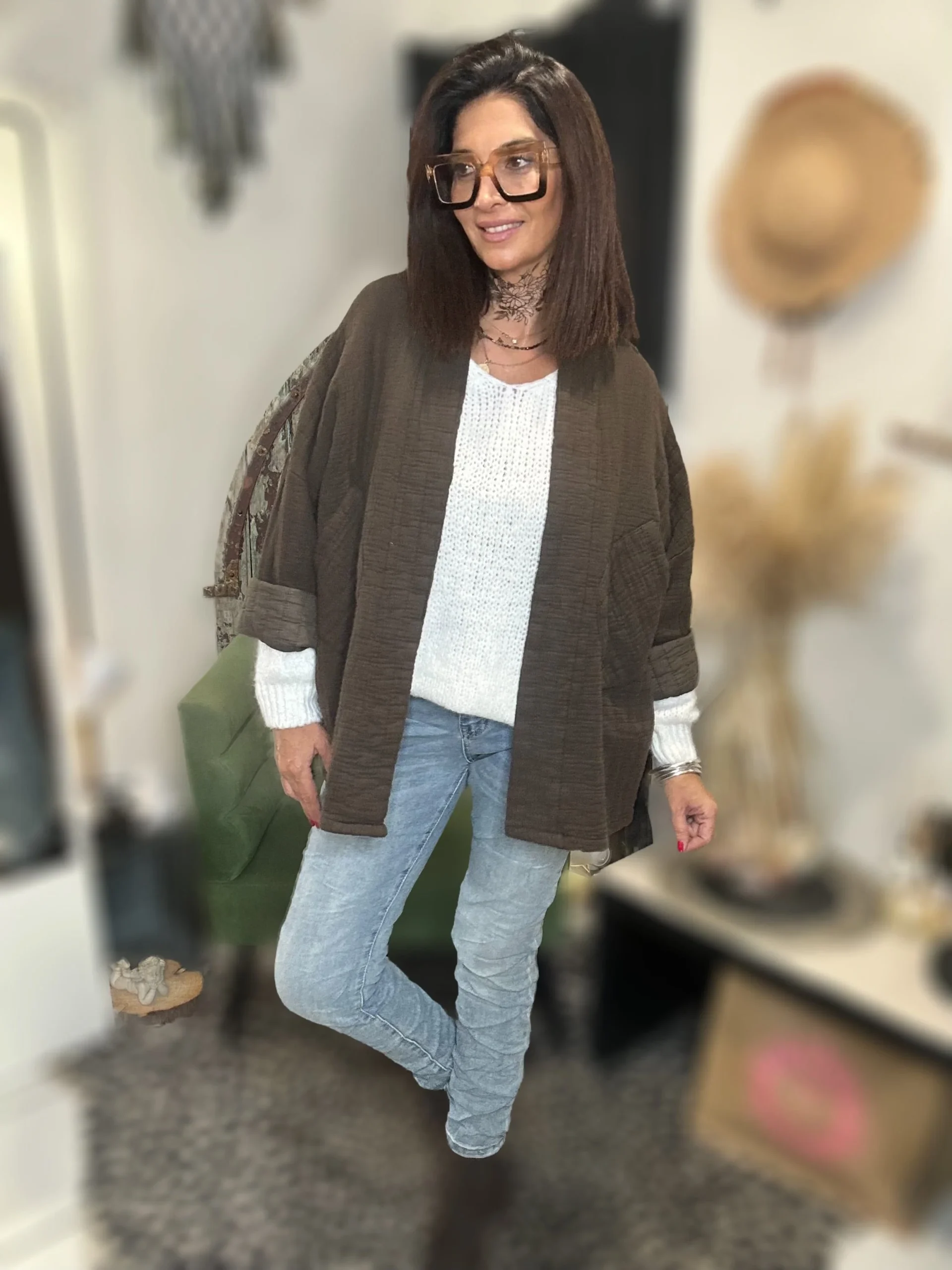 Virginie mesure 1m70 et porte la taille S/36 sur la photo