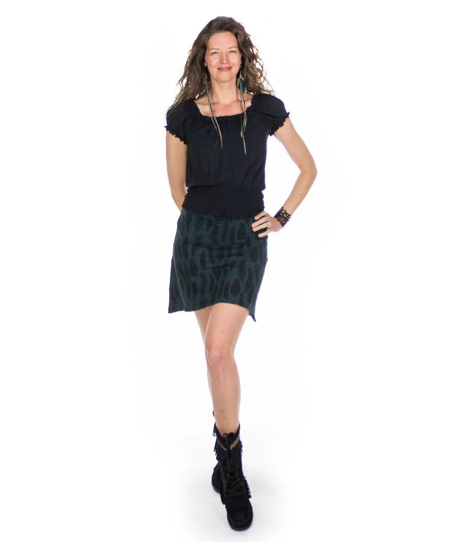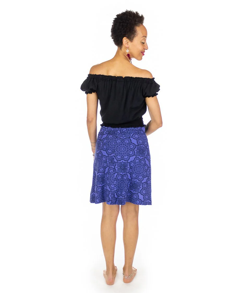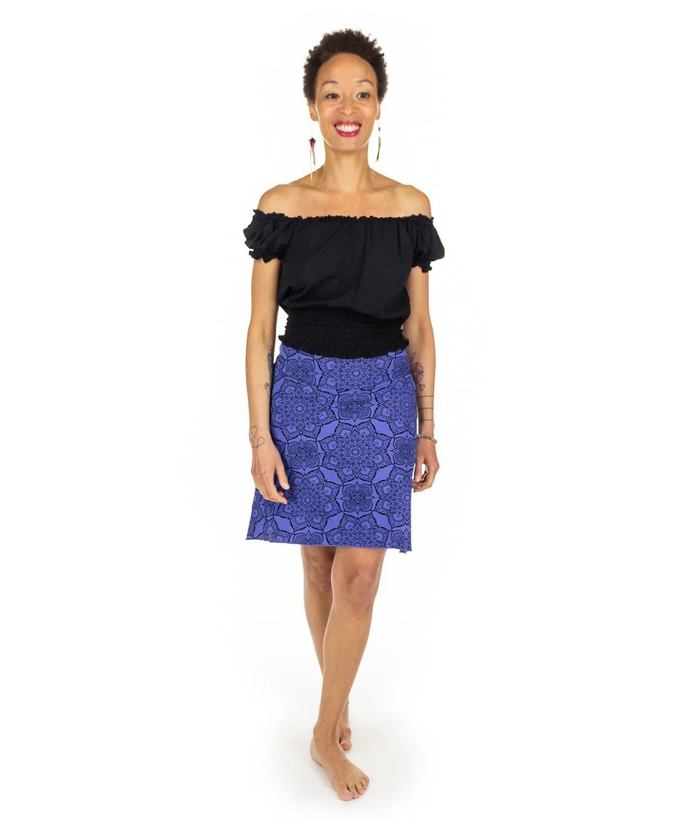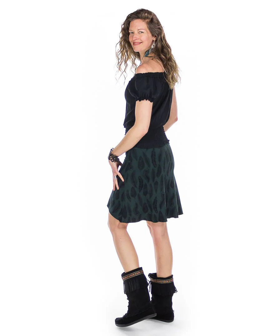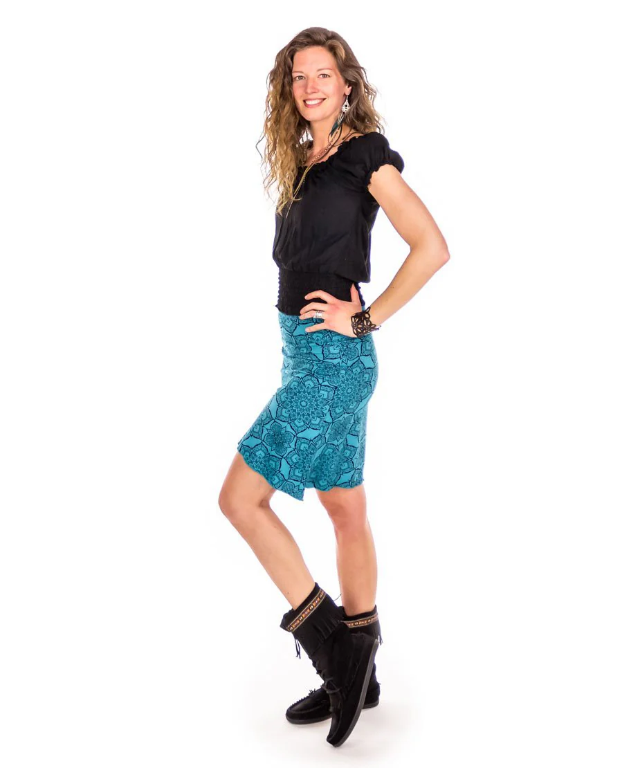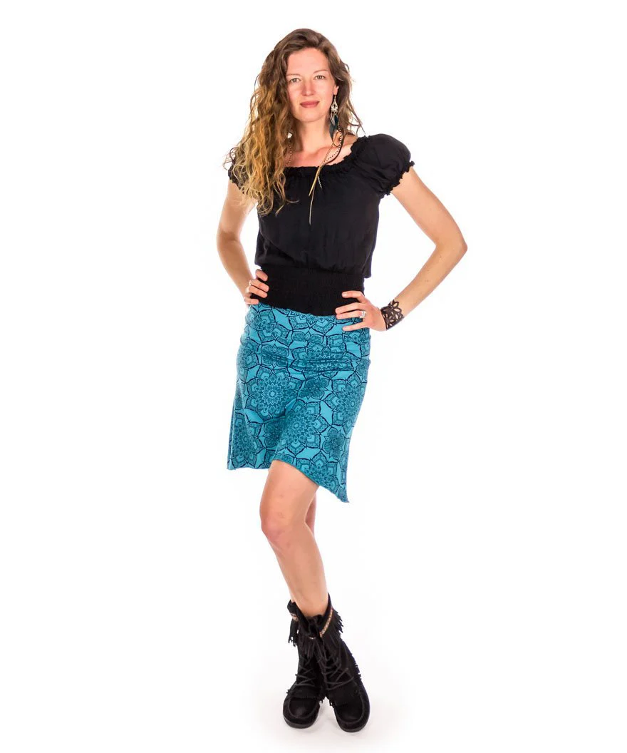 Jupe au genou en bambou extensible, Longueur confortable plus longue à l’arrière.90% Bambou et 10% lycra