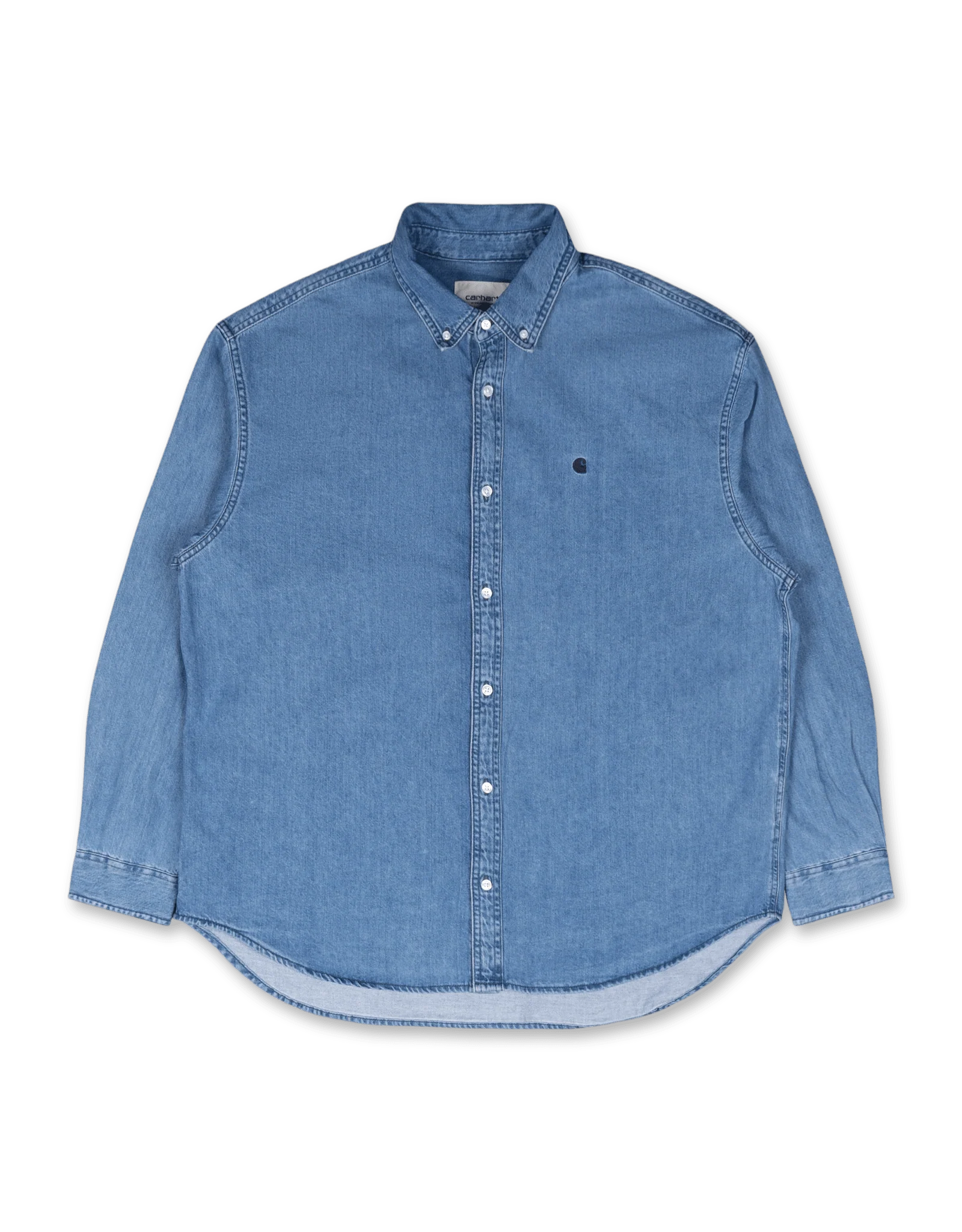 Carhartt WIP L/S Lucas Shirt er et stilfuldt supplement til enhver garderobe og byder på en løs pasform fremstillet i mellemvægtet bomuldsdenim. Designet med knaplukning foran og krave, har den et vævet ‘C’-logo på brystet, som afspejler brandets karakteristiske workwear-æstetik. Fremstillet af 100% bomuld kombinerer denne skjorte holdbarhed med komfort og er et alsidigt valg til afslappede udflugter eller et mere laid-back kontorlook. Dens tidløse design sikrer, at den forbliver en fast bestanddel i enhver modebevidst garderobe.