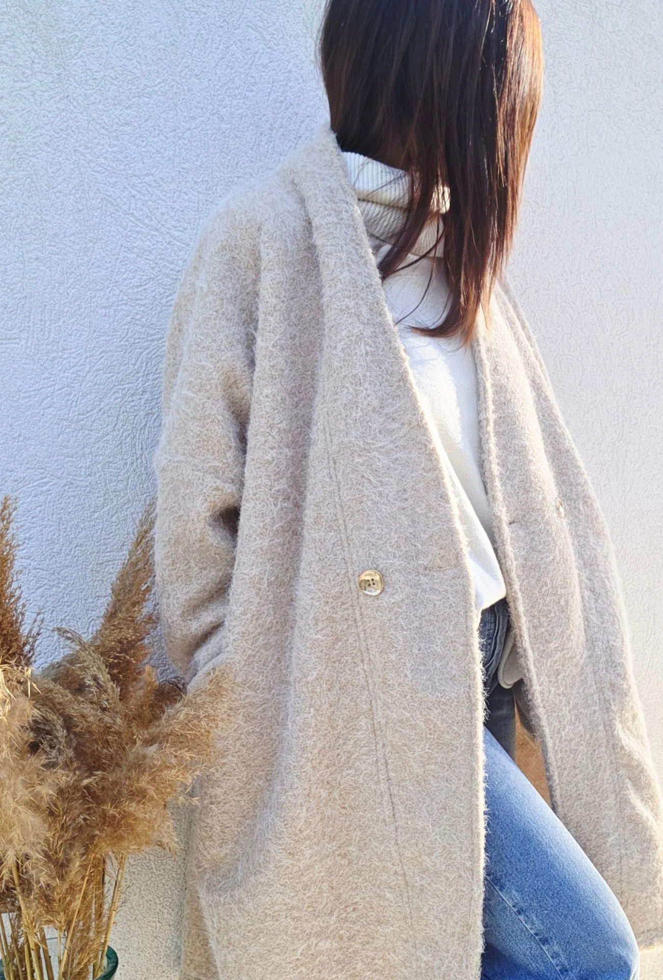 Élégance et confort s’unissent avec le manteau BAYA beige, une pièce incontournable de la saison. Sa coupe oversize et fluide lui confère une allure moderne et décontractée, tout en restant chic et féminine. Confectionné dans un mélange de laine et de polyester, il vous enveloppe de chaleur et de douceur pour affronter les journées les plus fraîches avec style.