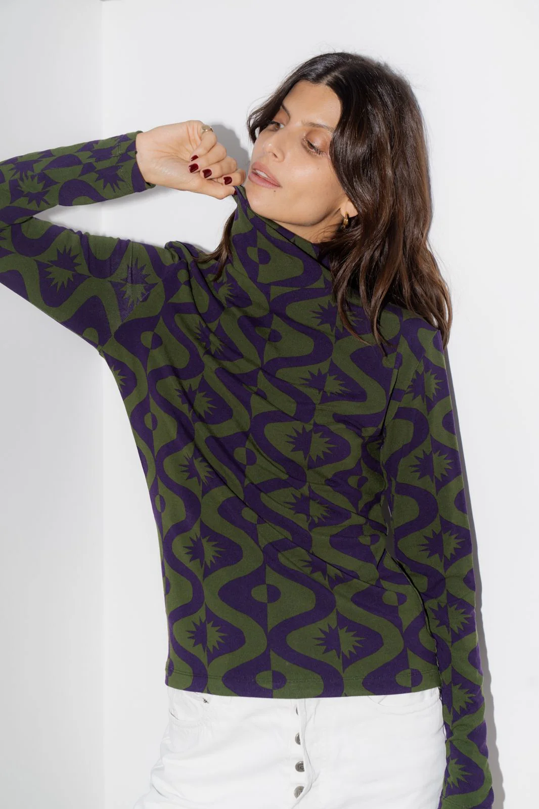 Le top Mathilda est l’indispensable de l’hiver. Il habillera chacune de vos tenues pour cette saison, un jean, un pantalon de costume ou une jolie jupe, c’est le top idéal à porter tout l’hiver. Il se marie parfaitement avec le pantalon Andrea du même imprimé pour un effet total look.