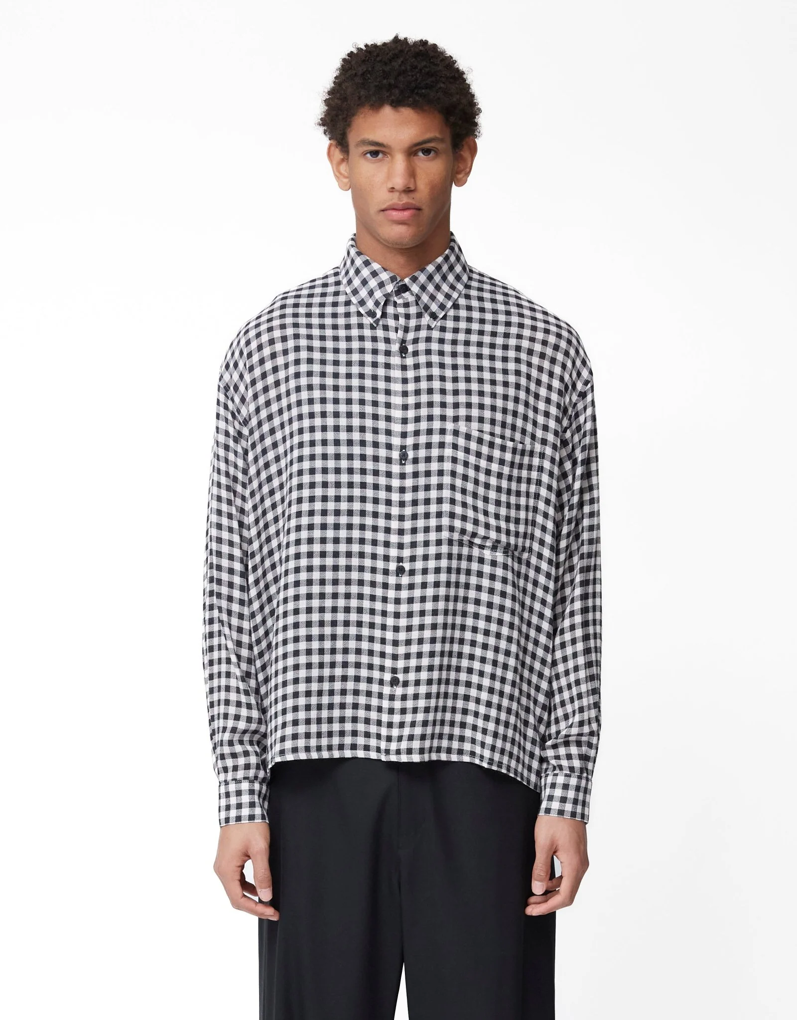 The Won Hundred Maza Check-shirt leverer et stilfuldt twist på en klassisk garderobefavorit. Fremstillet i en blanding af 67% viskose og 33% polyester giver denne skjorte let komfort med en oversized pasform, der løfter både funktion og attitude. Det markante ternmønster i afdæmpede nuancer tilføjer visuelt pift, mens en lavplaceret brystlomme giver et praktisk touch. Perfekt til dem, der vil opgradere deres casual look med et chikt og moderne præg.