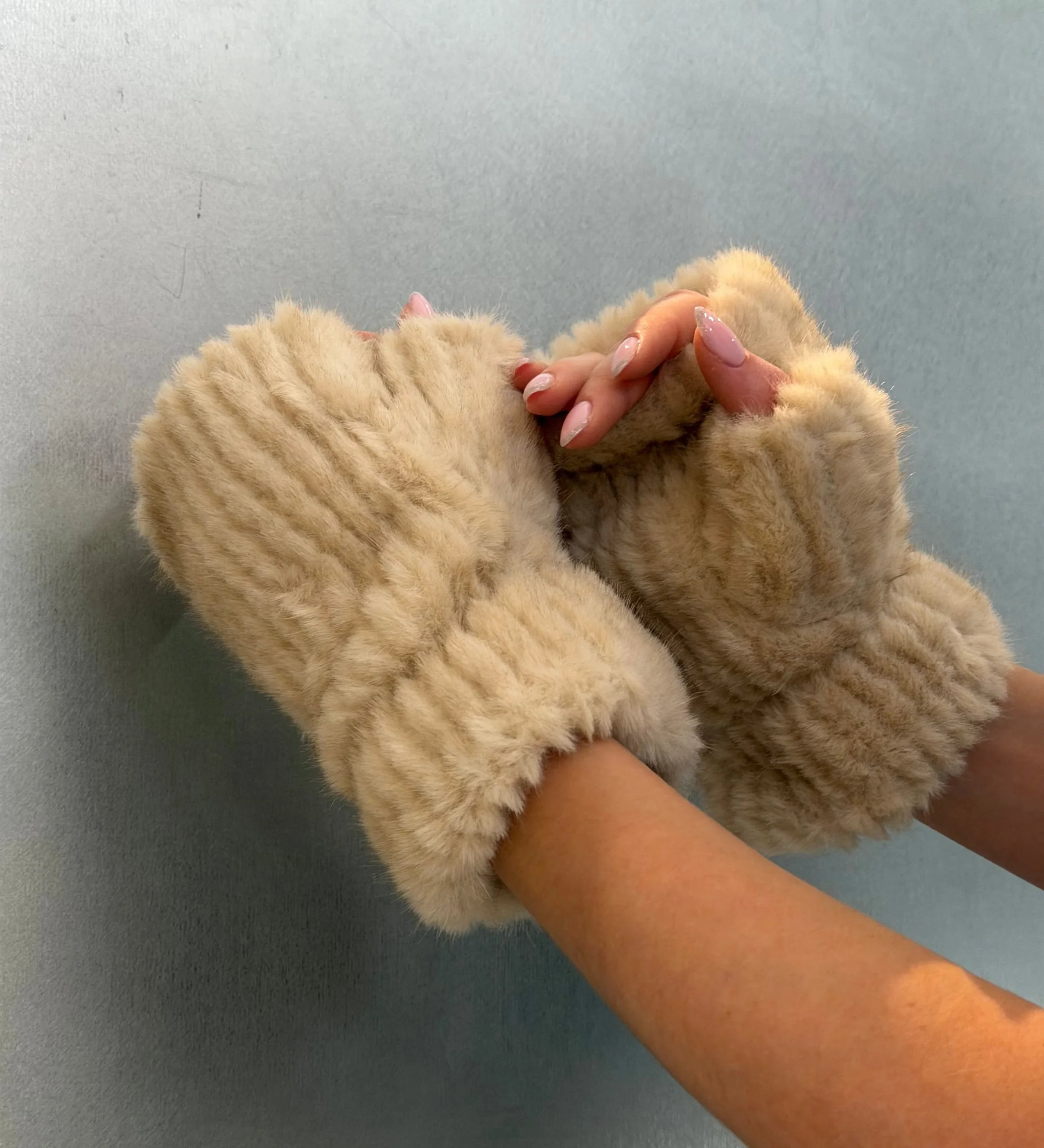 Mitaine en fausse fourrure. Matière texturisée. Doublure polaire.