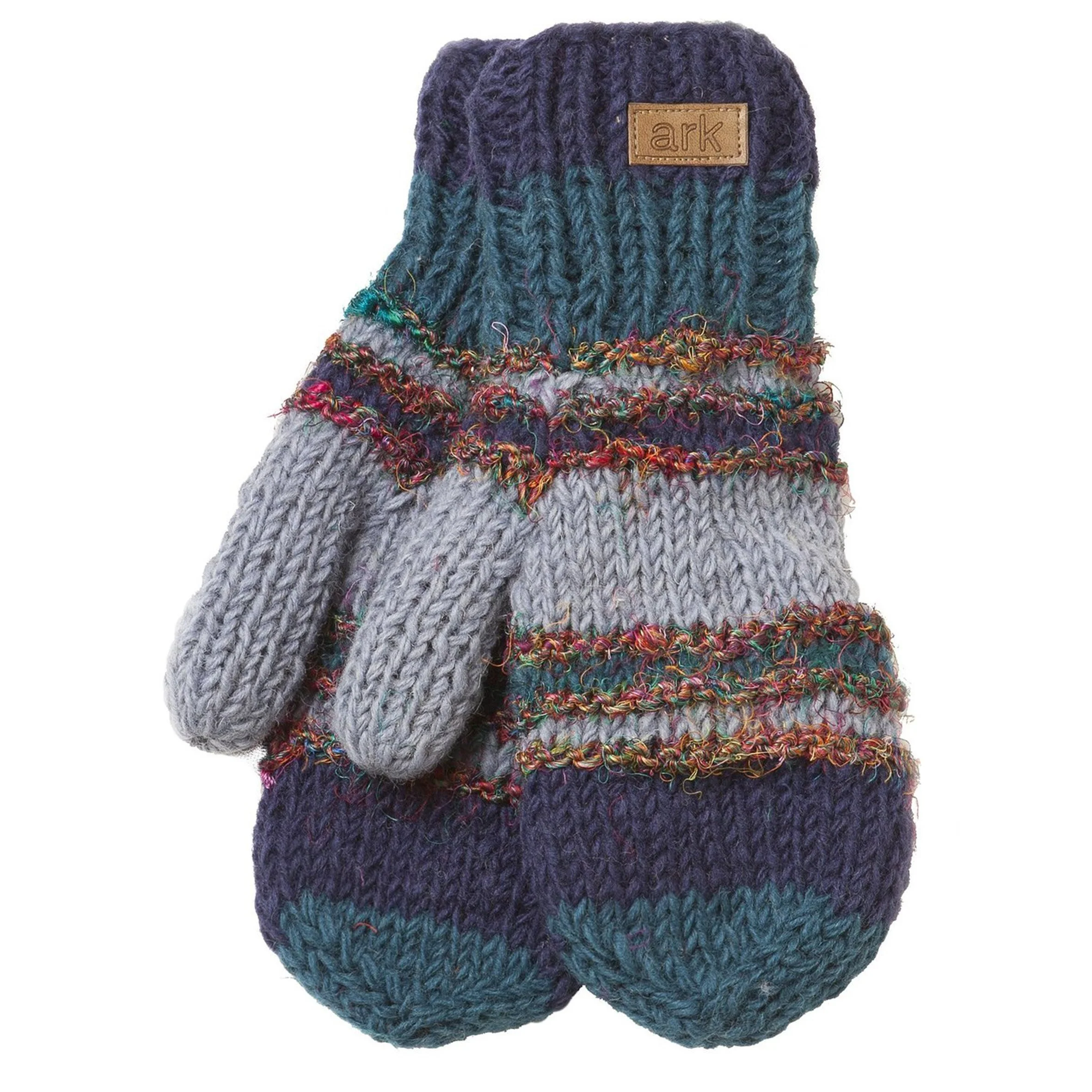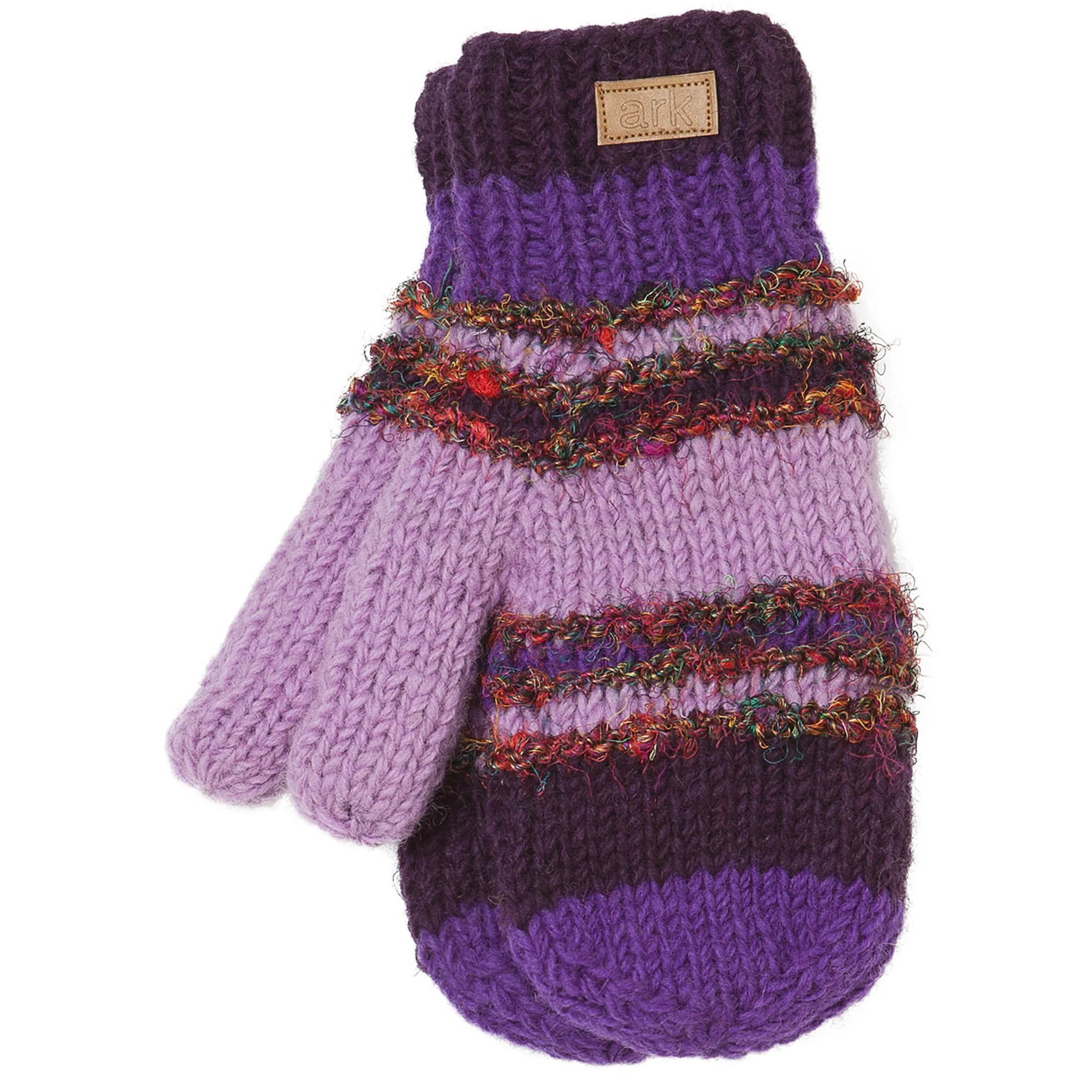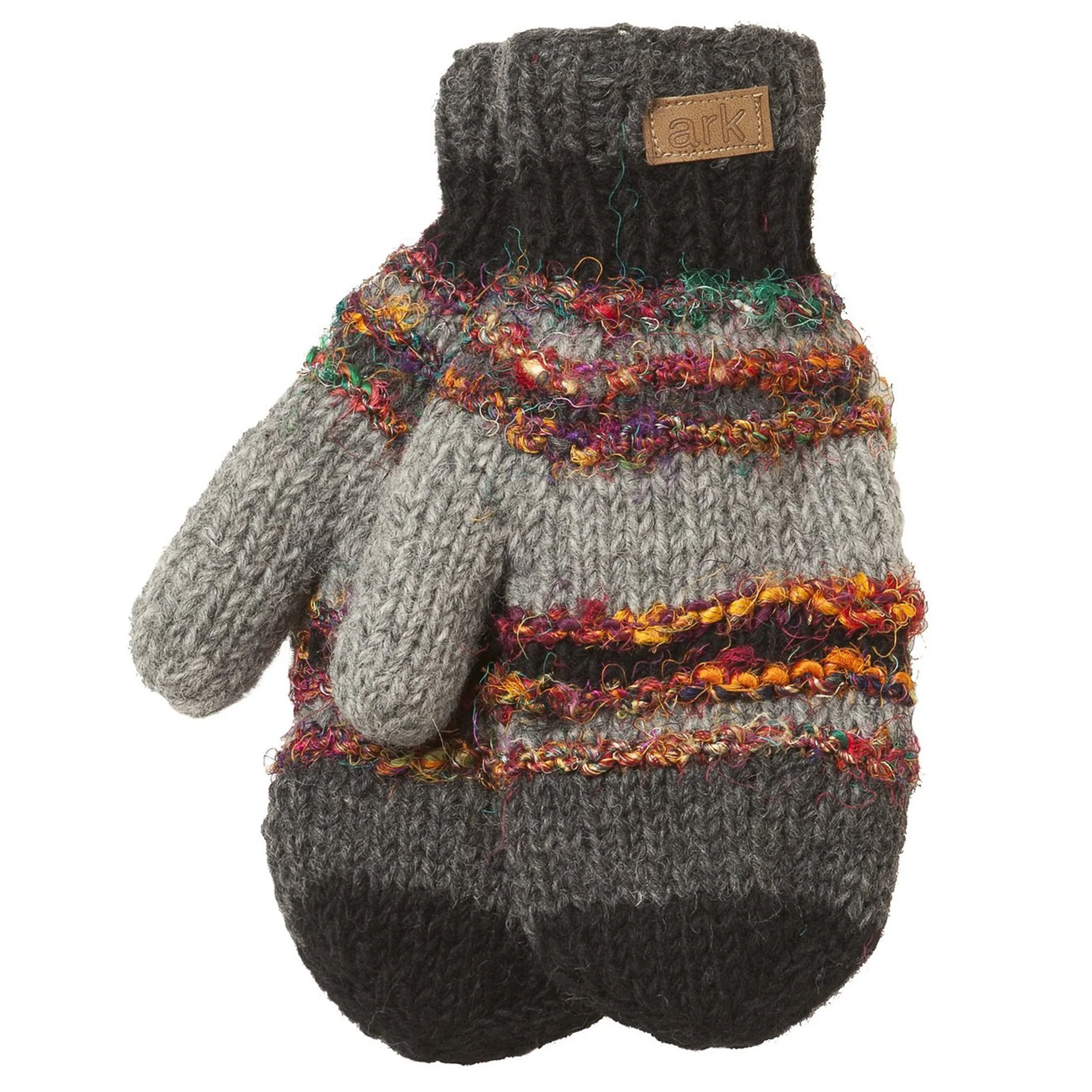 Mitaines 100% laine, adornées de soie recyclée sont doublée de polar pour confort accru. Ces gants sont tricoté à la main au Népal. Taille unique et unisexe.