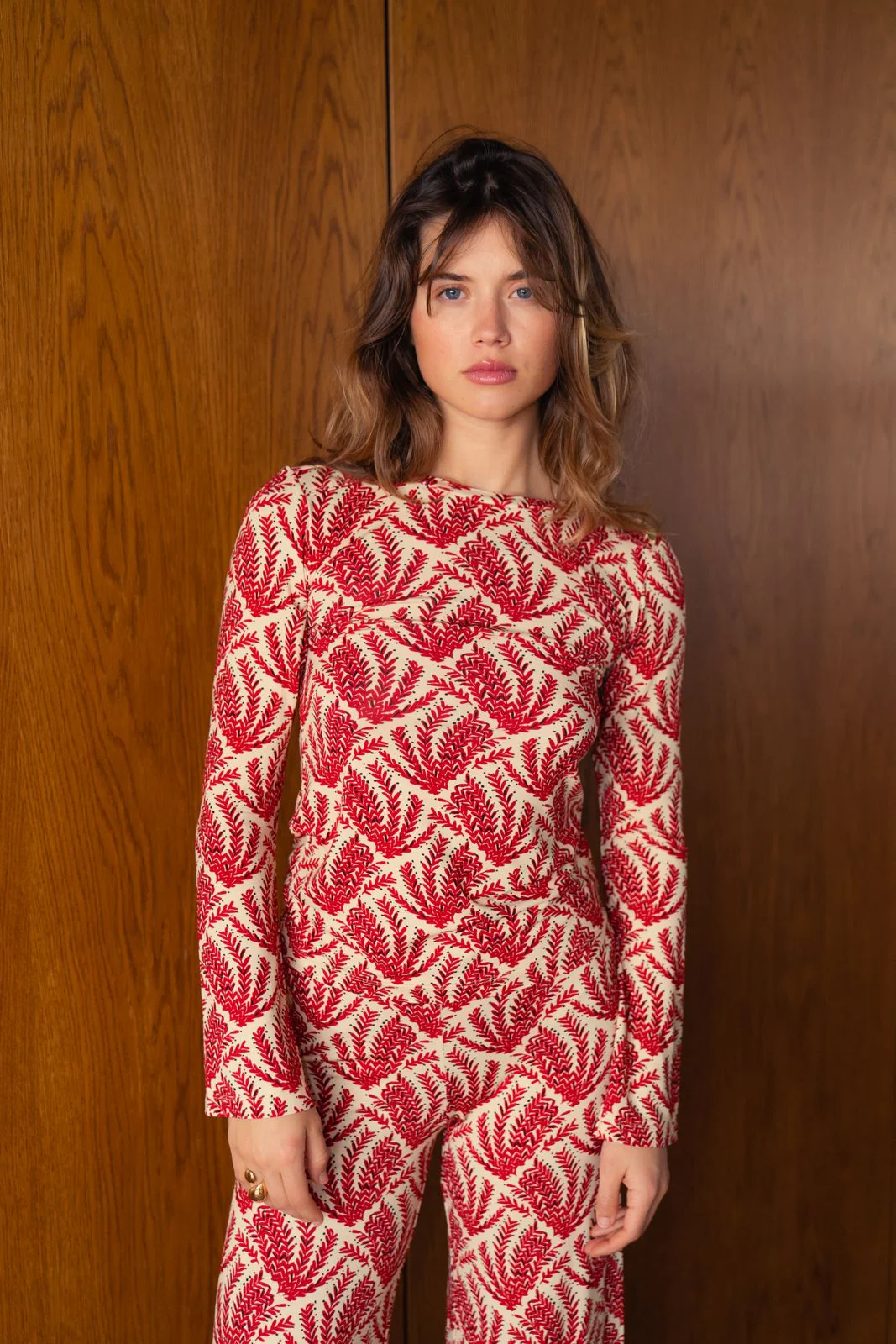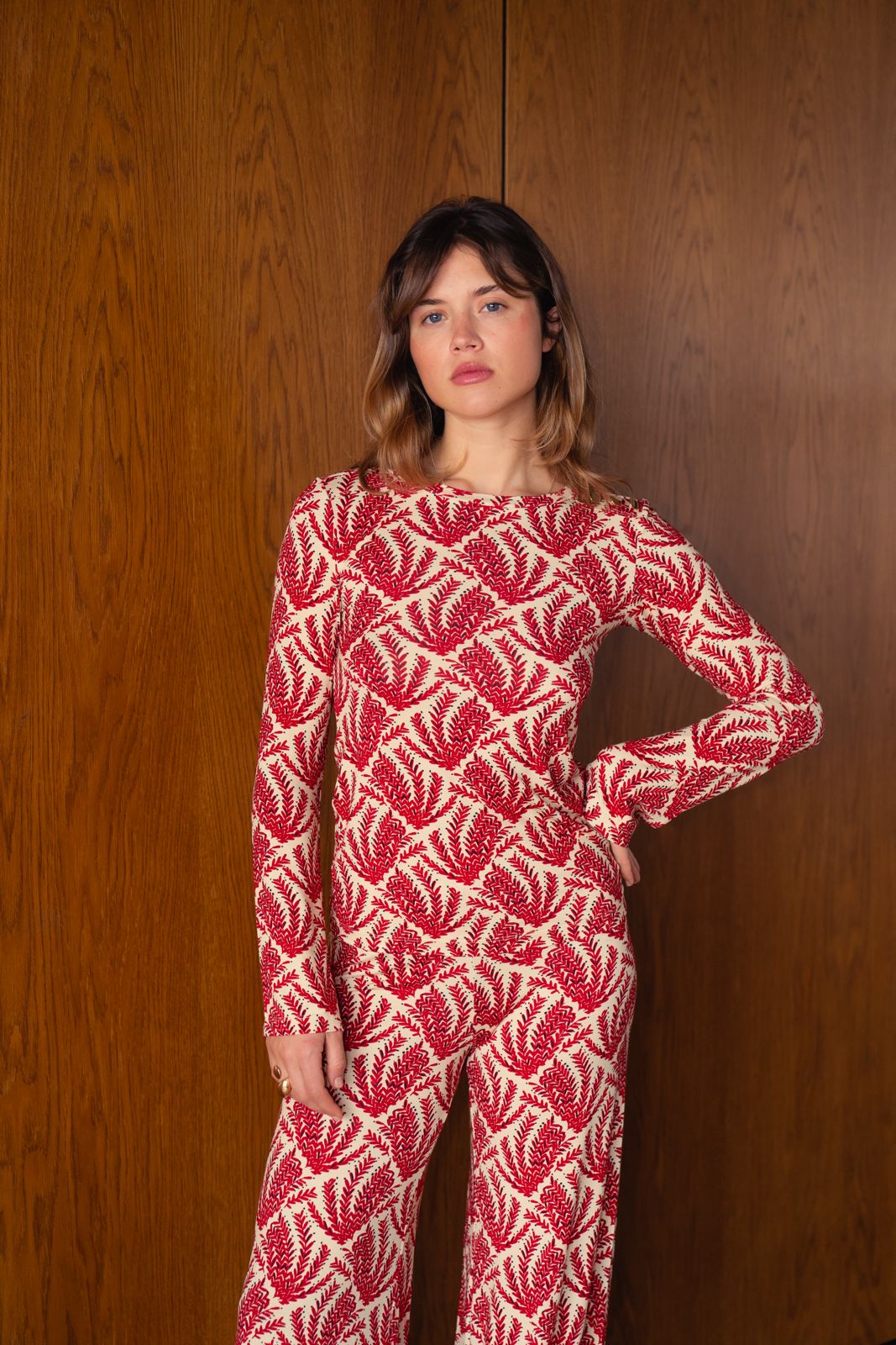 Le top Mona est le haut parfait pour mettre en valeur son ventre de femme enceinte. Avec une coupe ajustée et des manches légèrement évasées, il se porte en toutes circonstances. Il se marie parfaitement avec le pantalon Andrea du même imprimé pour un effet total look seventies. Il se porte également très facilement avec votre jean de grossesse ou votre legging de grossesse.