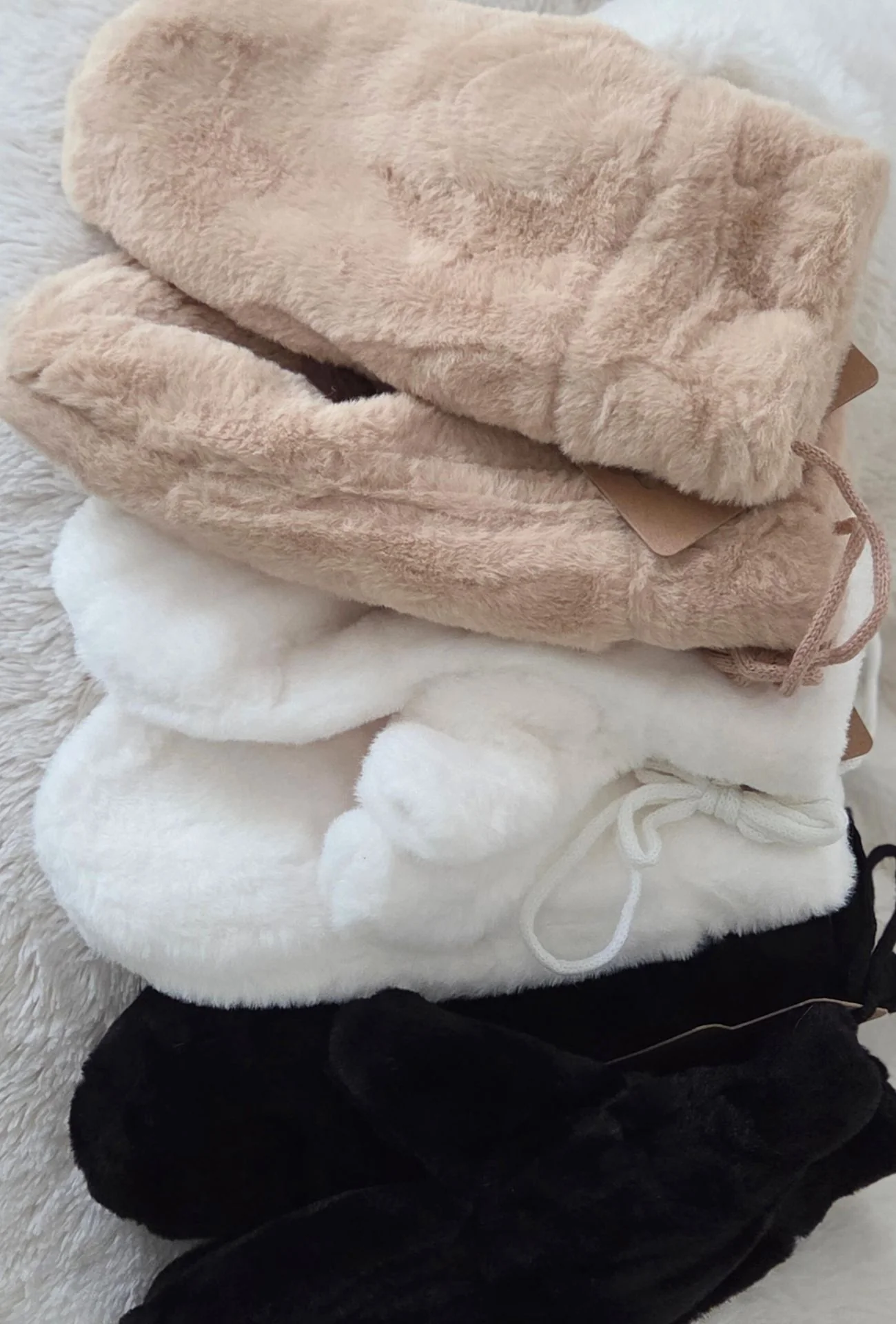 Pour leur texture pelucheuse ultra réconfortante, leur couleur douce qui illumine l’hiver et leur confort absolu. Elles sont aussi adorables que pratiques.