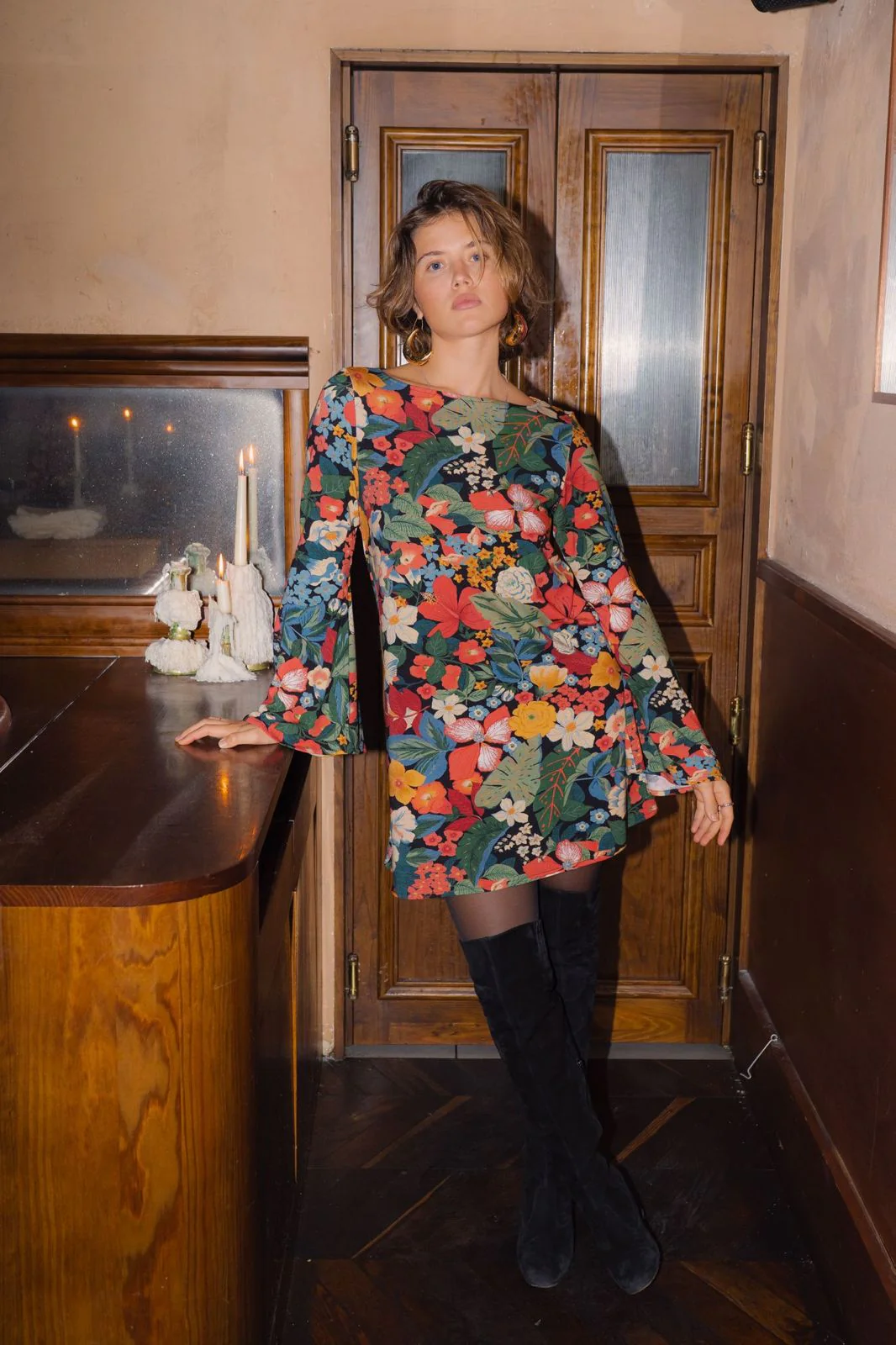 – Coupe droite évasée, longueur au dessus du genoux (inspiration année 60).