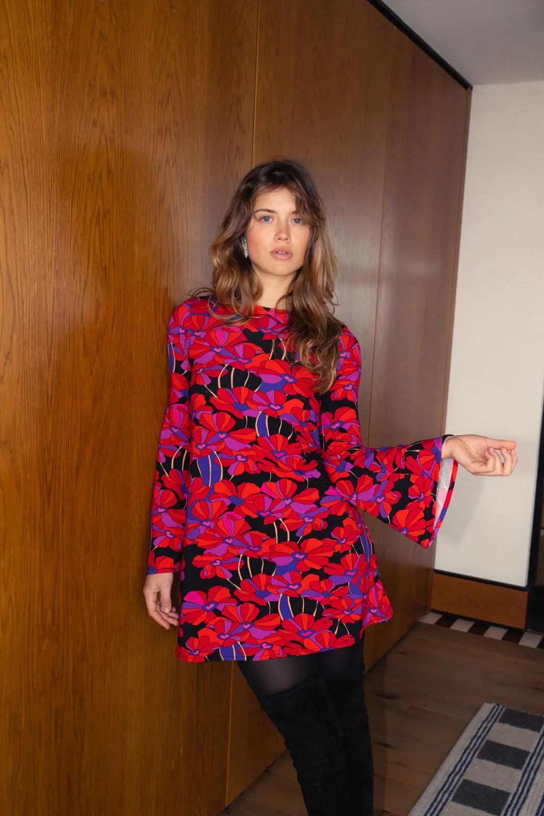 – Coupe droite évasée, longueur au dessus du genoux (inspiration année 60).