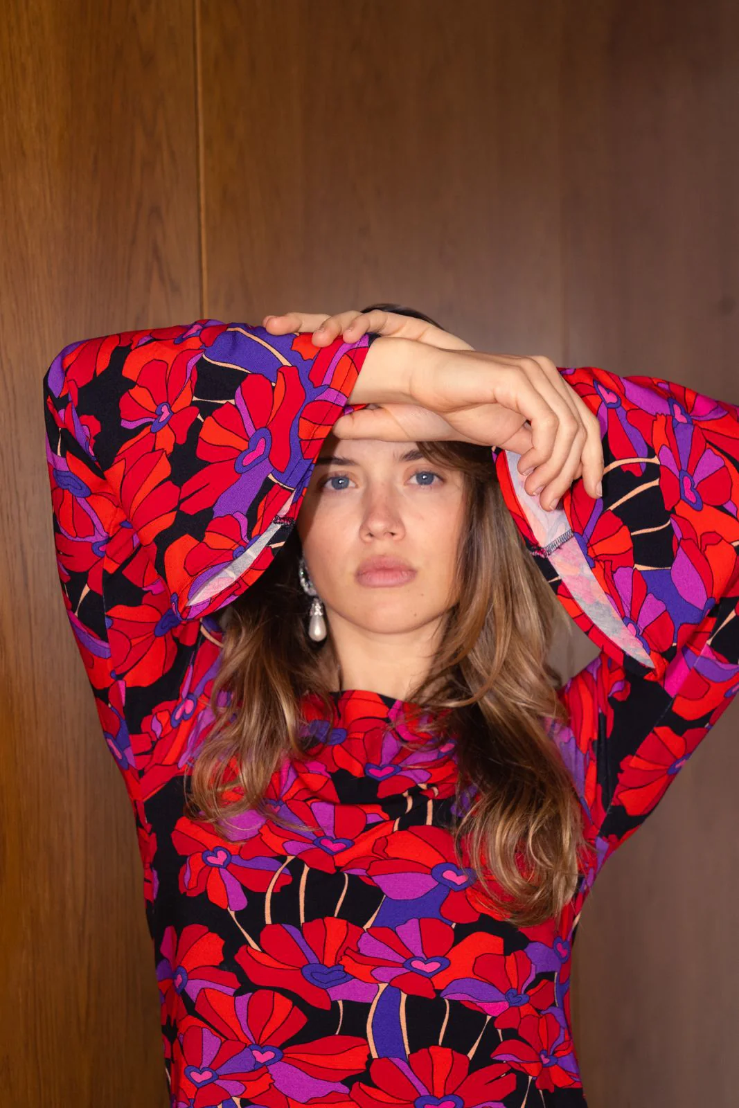 – Manches longues forme trapèze évasées (inspiration année 60).