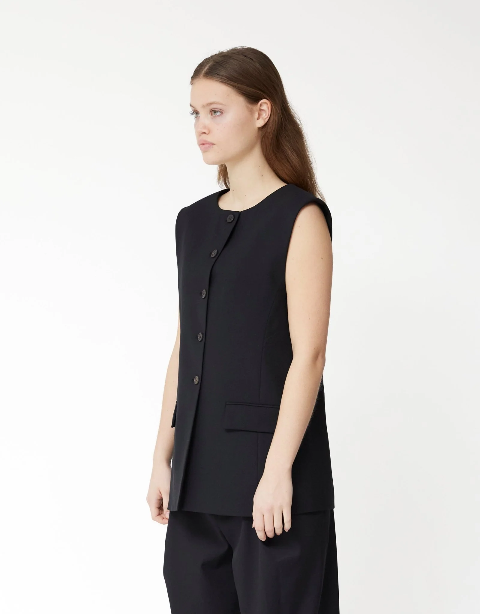 The Amomento Oversized Button Up Vest in black is a stylish layering piece that combines a modern aesthetic with timeless appeal. Crafted from a blend of 50% wool, 39% polyester, and 11% zentra, this vest offers a luxurious feel while ensuring durability. The 100% polyester lining enhances comfort, making it an ideal choice for versatile wear. Its oversized fit and clean button-up design elevate any outfit, providing a chic and contemporary edge to your wardrobe.