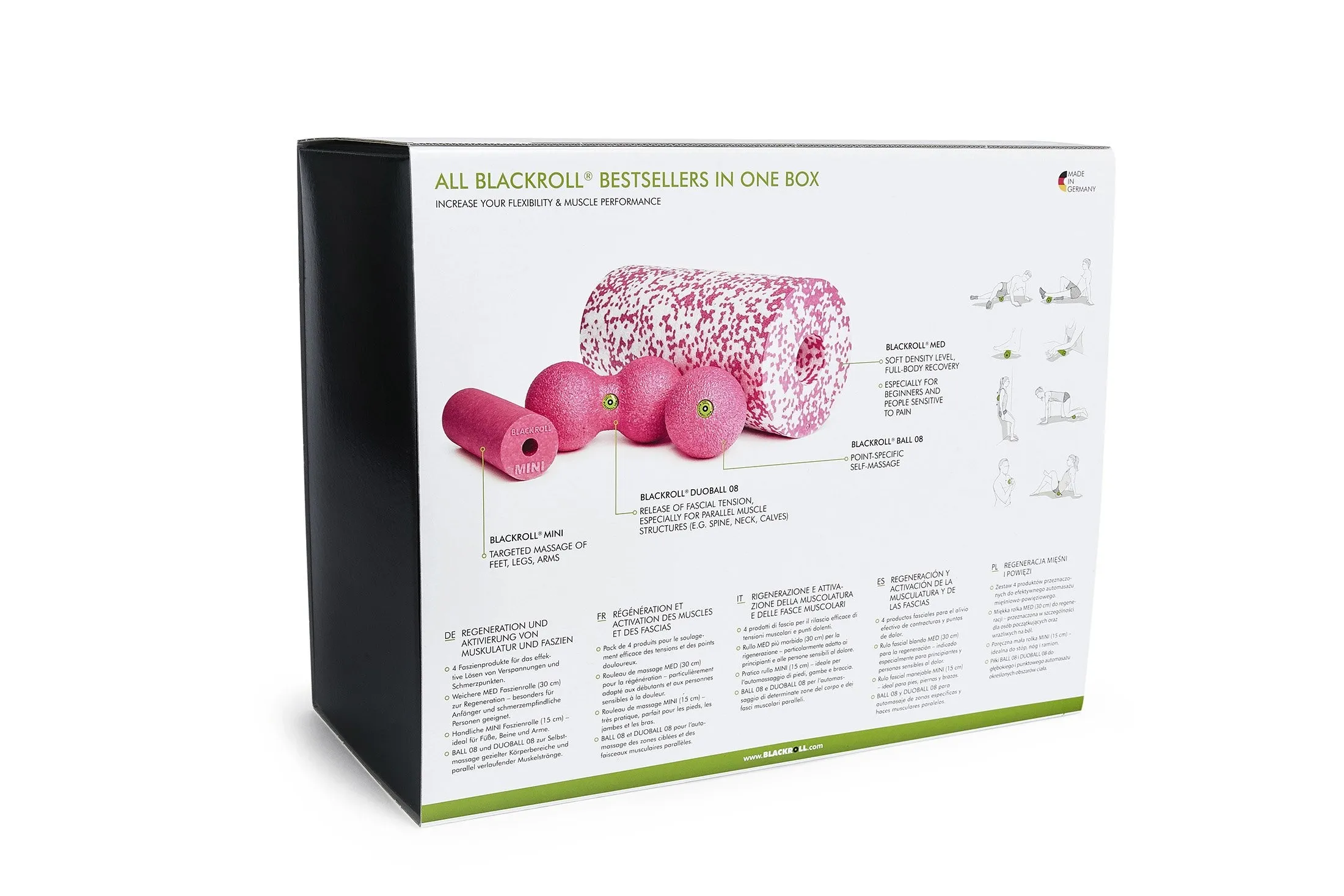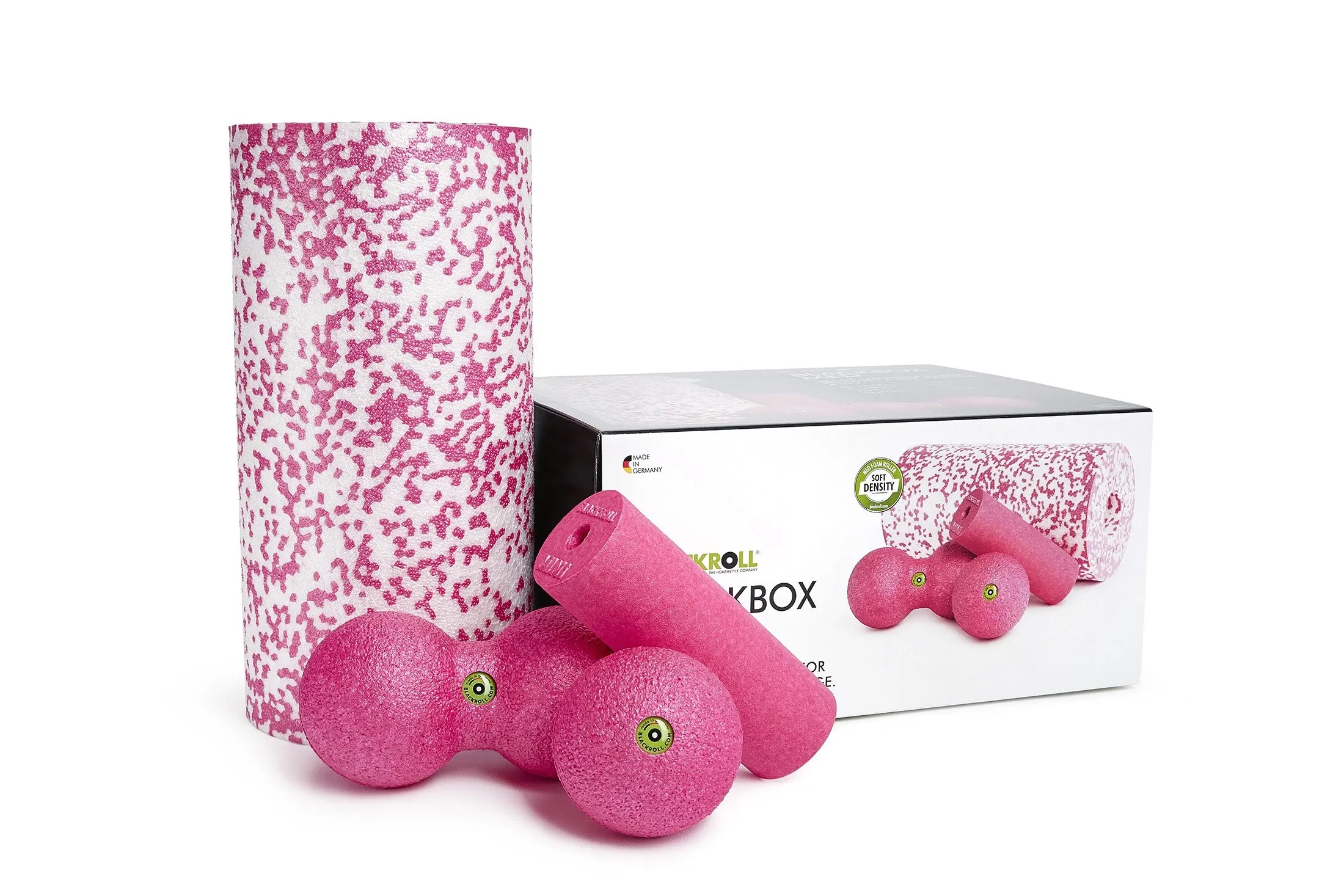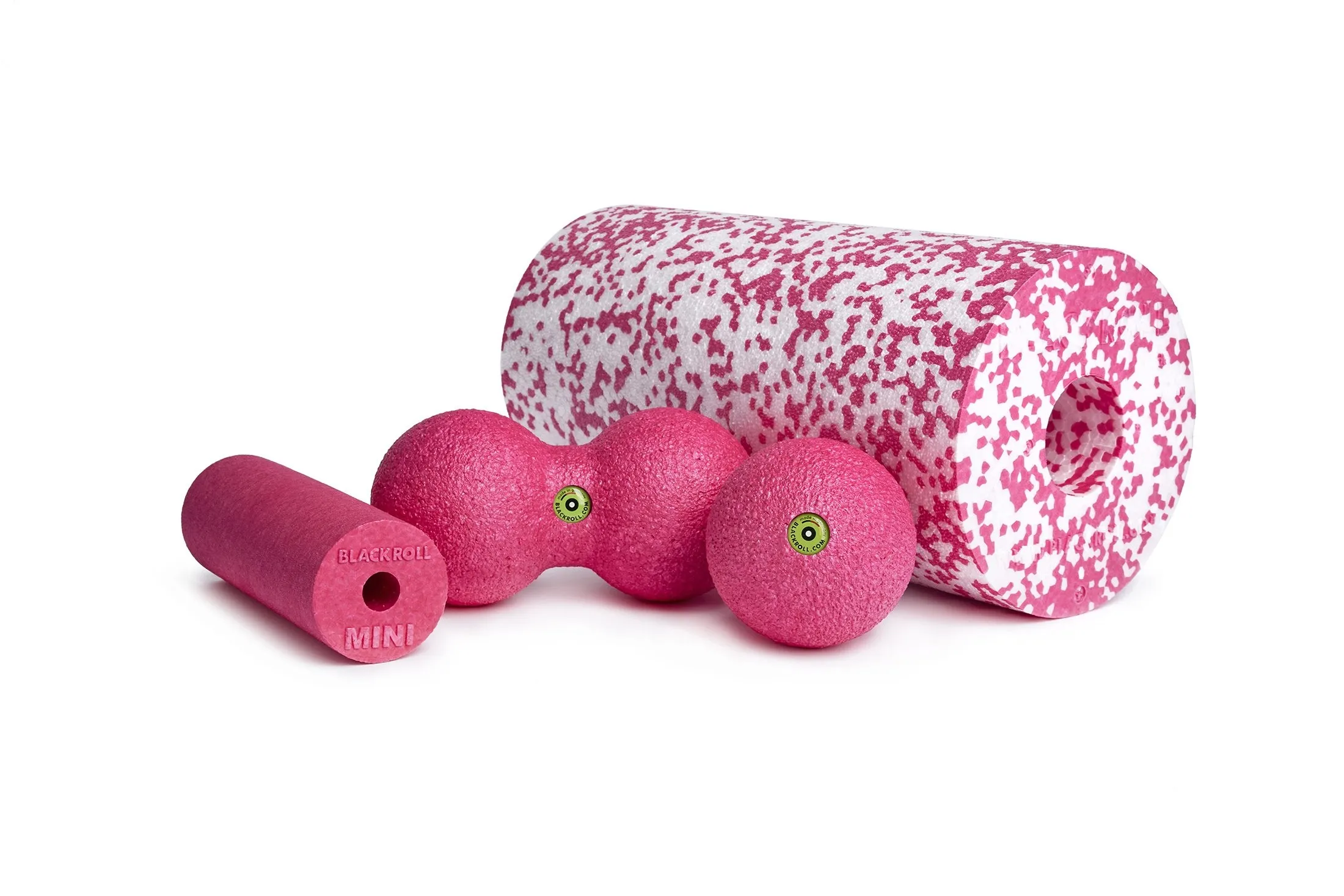 Ce lot multifonctionnel composé d’un BLACKROLL® MED blanc/rose, d’un BLACKROLL® MINI rose, d’un BLACKROLL® BALL 08 rose et d’un BLACKROLL® DUOBALL 08 rose est parfaitement adapté pour traiter la musculature du dos et d’autres parties du corps de manière ciblée. BLACKROLL® MED vous permet de travailler tout le corps. BLACKROLL® MINI est spécialement adapté pour un massage ciblé des pieds, des jambes et des bras. BLACKROLL® BALL 08 vous permet de masser différentes parties du corps comme les bras et les avant-bras, la nuque, les épaules, mais aussi les pieds, les mollets et le tendon d’Achille de manière ciblée. BLACKROLL® DUOBALL 08 est approprié pour le massage du dos ainsi que de la nuque, de la colonne vertébrale et du tendon d’Achille. Les produits BLACKROLL® peuvent être utilisés au sol, au mur ou sur une table.