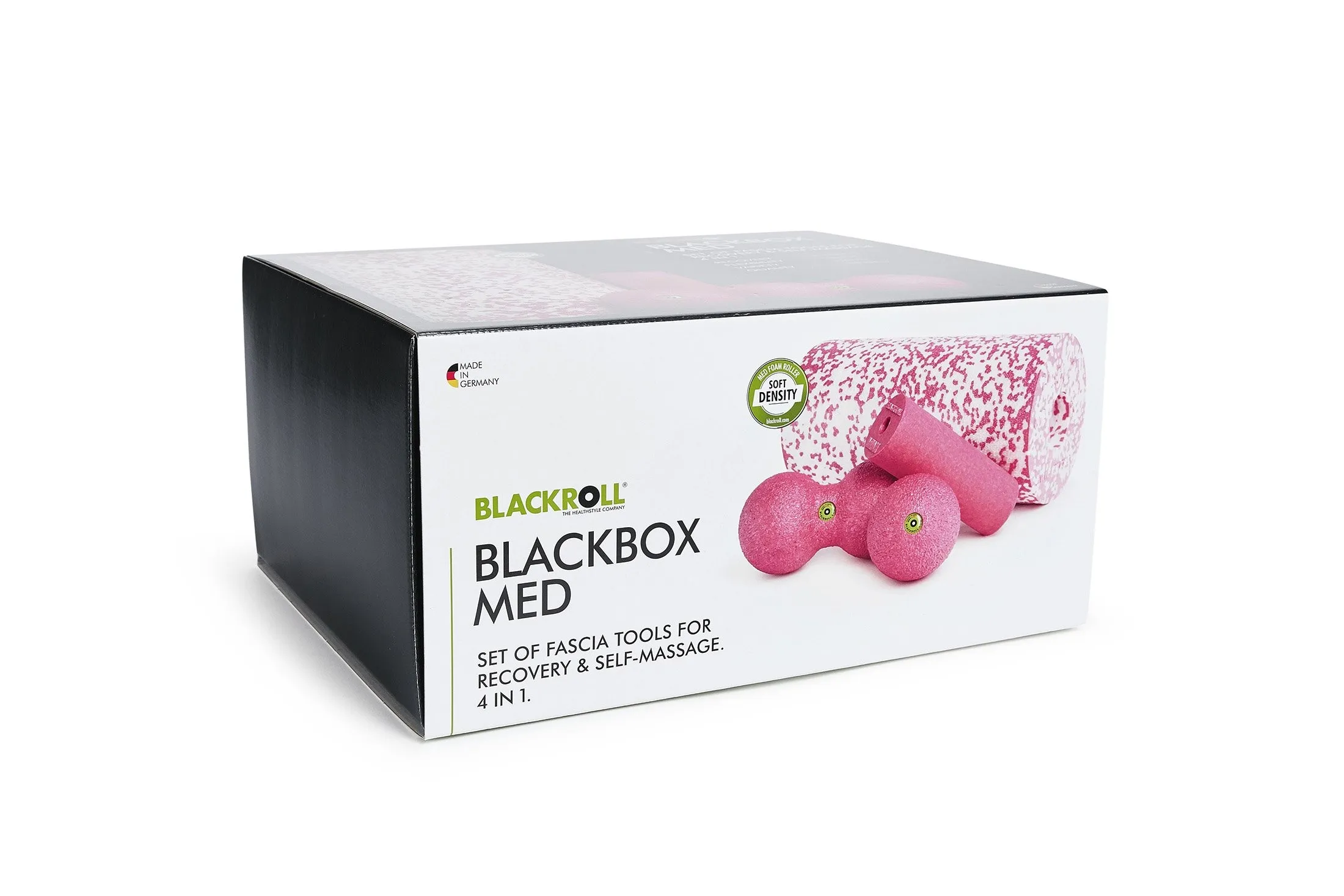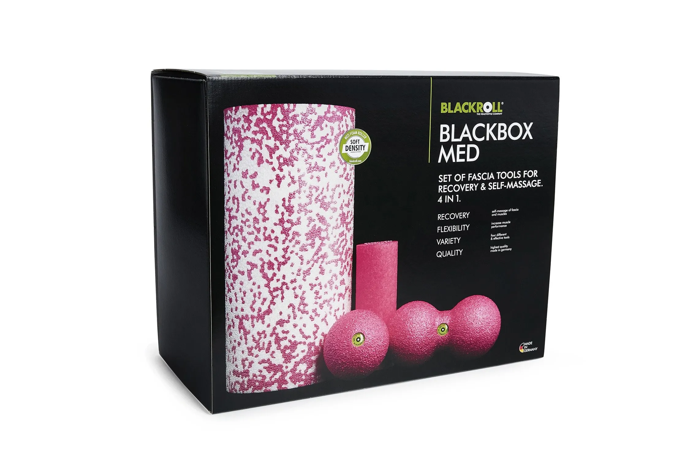 BLACKROLL® BLACKBOX MED contient tous les outils utiles pour un entraînement myofascial efficace de tout le corps. Le lot multifonctionnel est composé de quatre produits différents et est parfaitement adapté pour masser différentes régions du corps de manière ciblée.