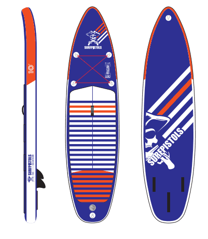 Le pack SURFPISTOLS MARINIERE 10’ (3 mètres) est un pack complet, pour gabarits légers en dessous de 75 kg, qui vous permettra de découvrir le stand up paddle dans de bonnes conditions.
