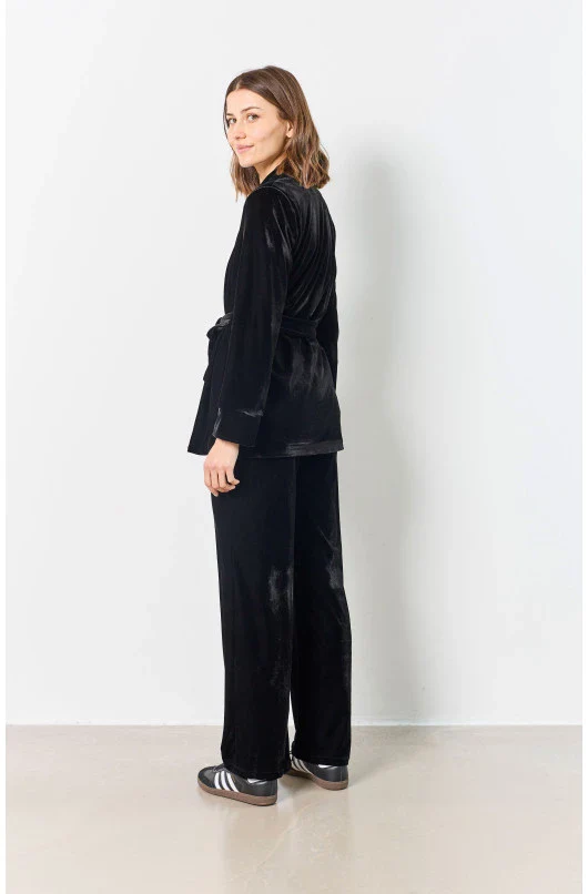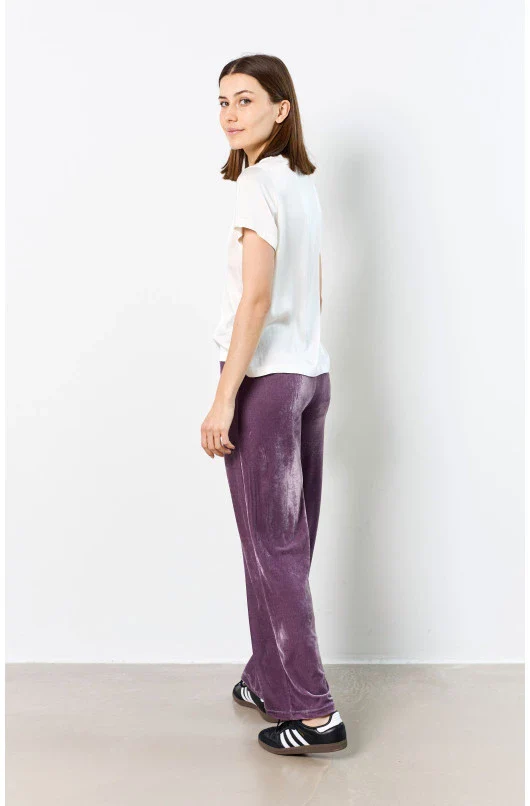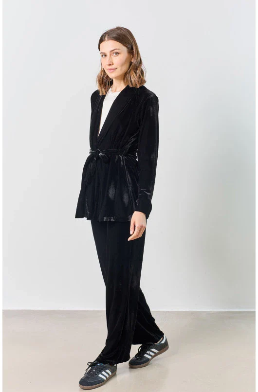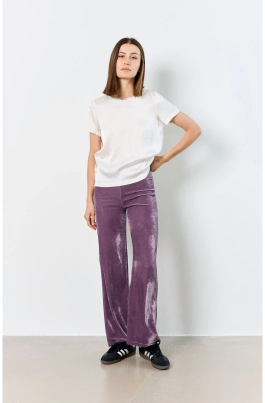 Pantalon en velours élastiqué Love At Me, alliant confort et élégance. Doux et raffiné, il offre une silhouette chic et agréable à porter.